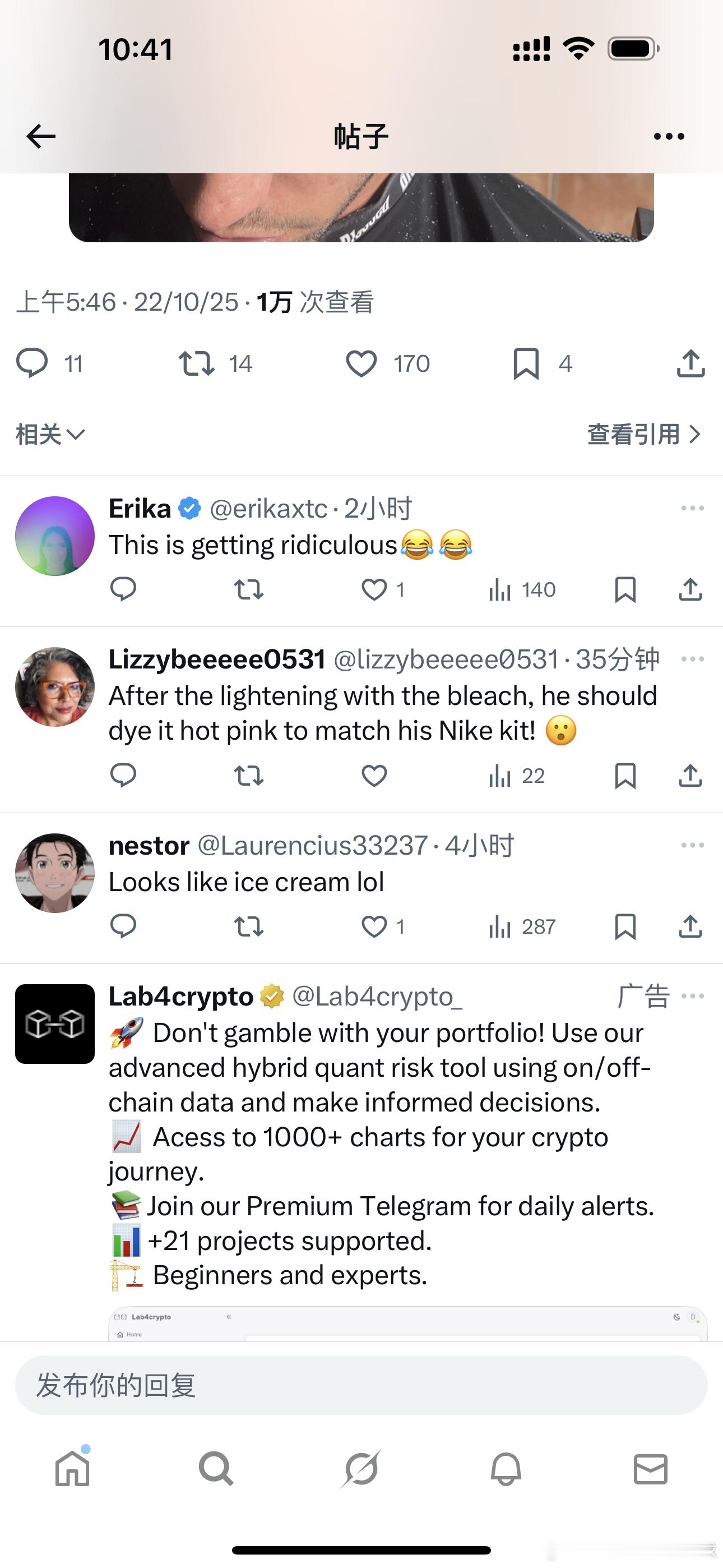 阿尔卡拉斯发型再加工这是要染白金色啊,下面的评论也很搞笑;“像冰激凌🍦”“用漂