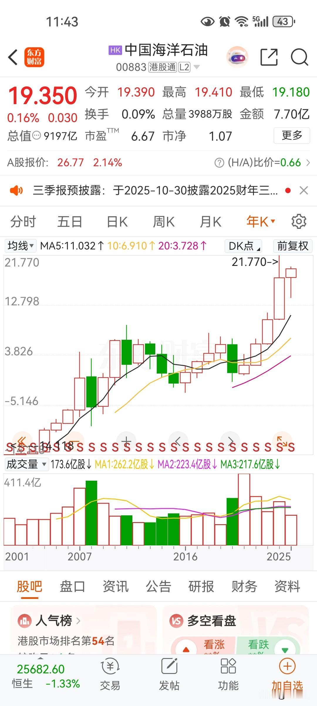 中国海油这几年也是一年一倍,超过茅台的市值应该是很快了