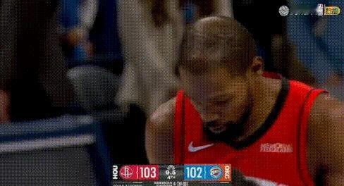 23+9+3——杜兰特火箭首秀仅6.5分,下半场加时消失! 上半场14+5+1表现还可以:快攻扣篮拿下首球(图4),2节的3连中投相当给力(图7-9)。 可惜下半场、2加时都仅各进1球(图1、图10-11),关键球更多是申京在打。 4节末丢关键罚球被SGA2秒绝平,加时1篮板暂停技犯未吹吓死人(图2-3)。 首秀跟队友的配合还不默契,多磨合吧!