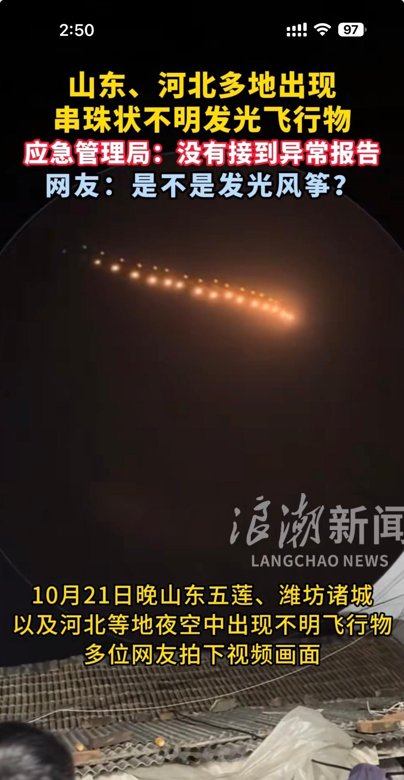 山东河北多地夜空惊现不明飞行物
