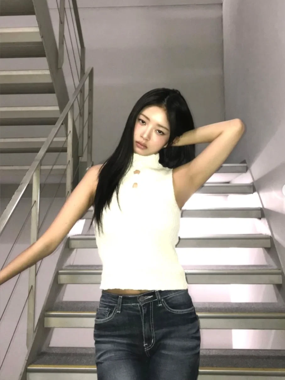 夏日清新穿搭,条纹背心+高腰短裤,轻松自在,元气满满!🌞👗💃