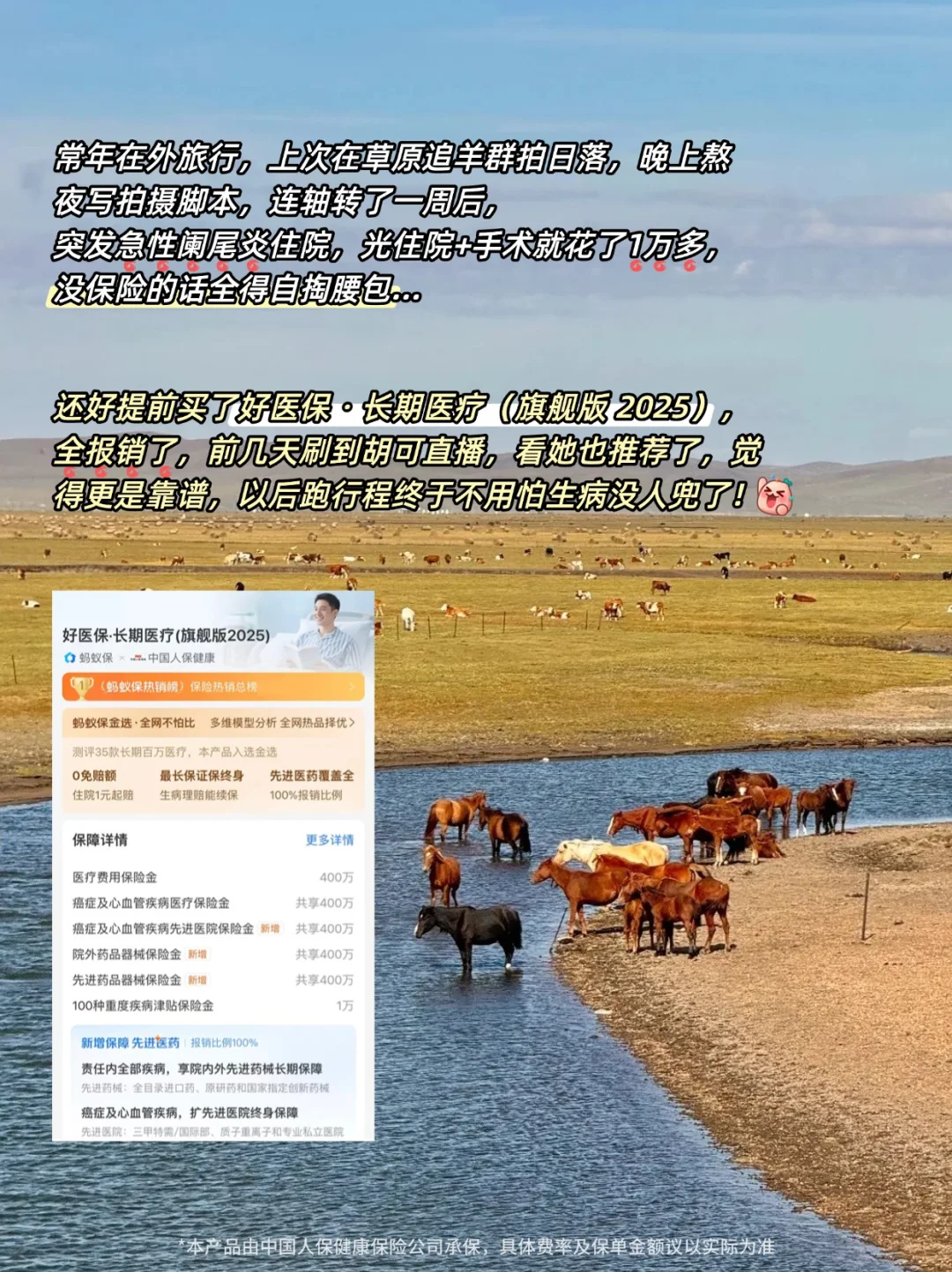 我现在每月花 20 多块用它,还不够买一杯网红奶茶,却能在跨城赶拍、熬夜赶工时踏实不少。经常高强度工作的旅游博主或自由职业者,尤其是没医保的,真别省这份钱!直接去支付宝搜🔍「好医保旗舰版」get 同款,早买早安心,别等身体熬出问题才后悔!