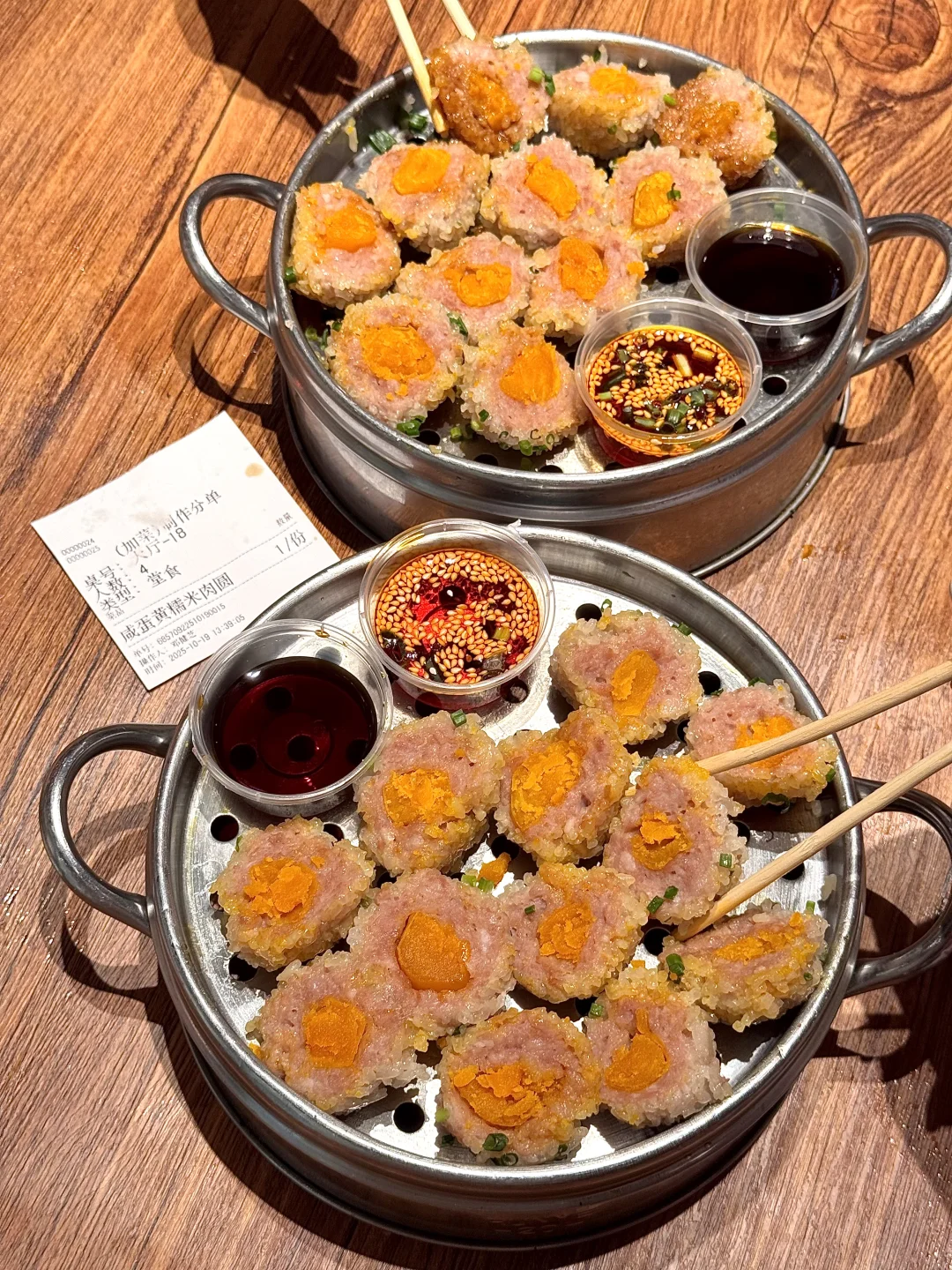 咸蛋黄糯米肉丸,好扎实一个,鲜鲜糯糯的我一个人可以吃完一整碗!私心舍不得它太🔥。。