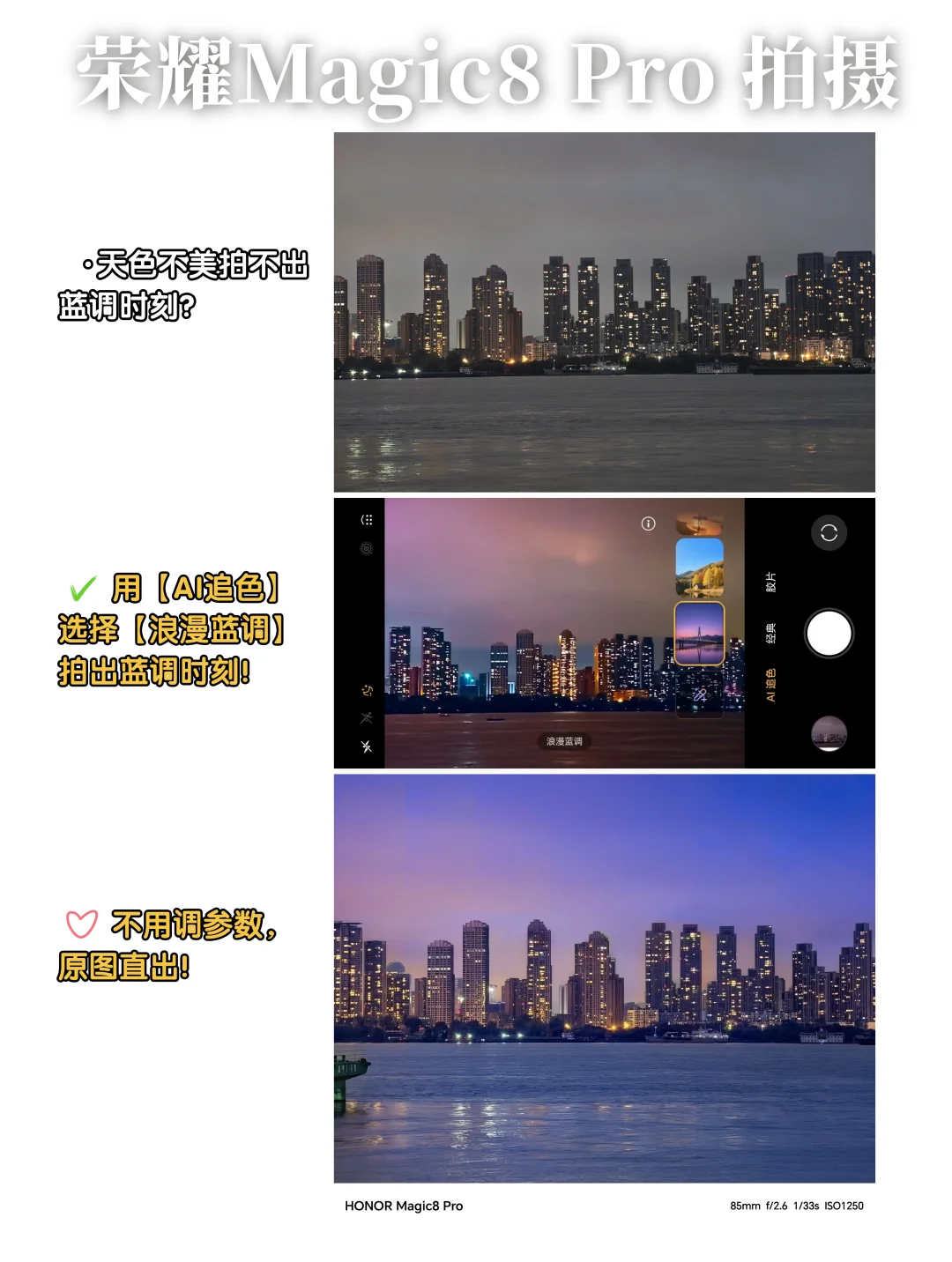 天色不美拍不出蓝调时刻?AI追色来帮你,用【浪漫蓝调】色彩风格,有了它简直是小白秒变摄影师!