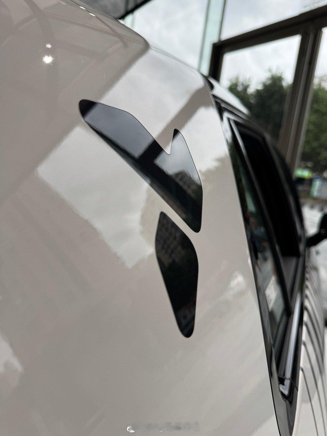 近距离看了一下拉花,是贴上去的,其实就是黑色车漆贴白色拉花。别小看只是贴拉花,黑色都是镂空出来的!包括侧面这个LOGO!还有门把手内侧也贴到了,讲究!
