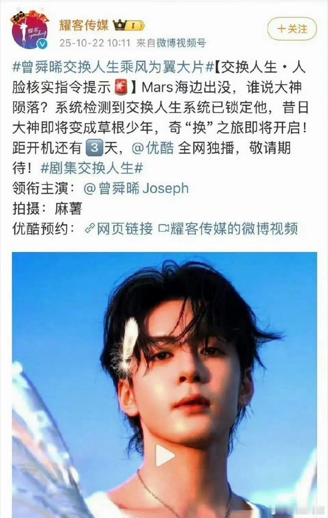 曾舜晞《交换人生》一番回车键官宣+提前一天单宣物料 非常标准的一番大男主官宣程序