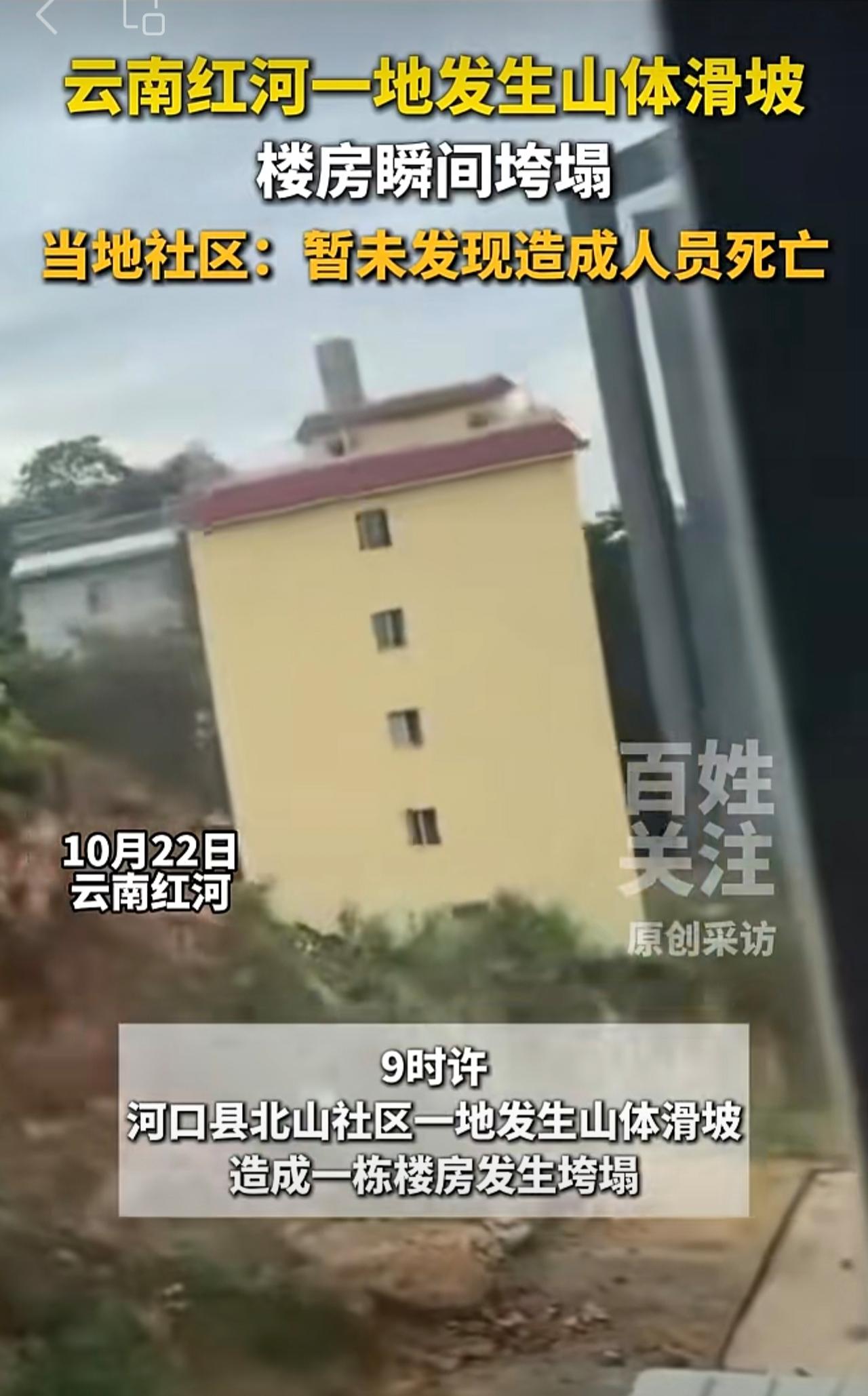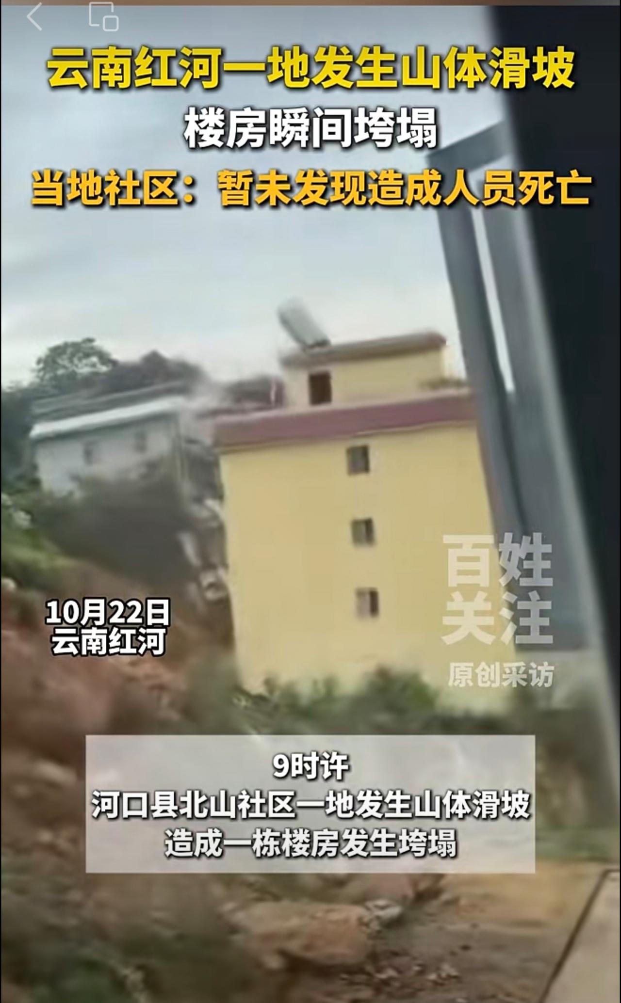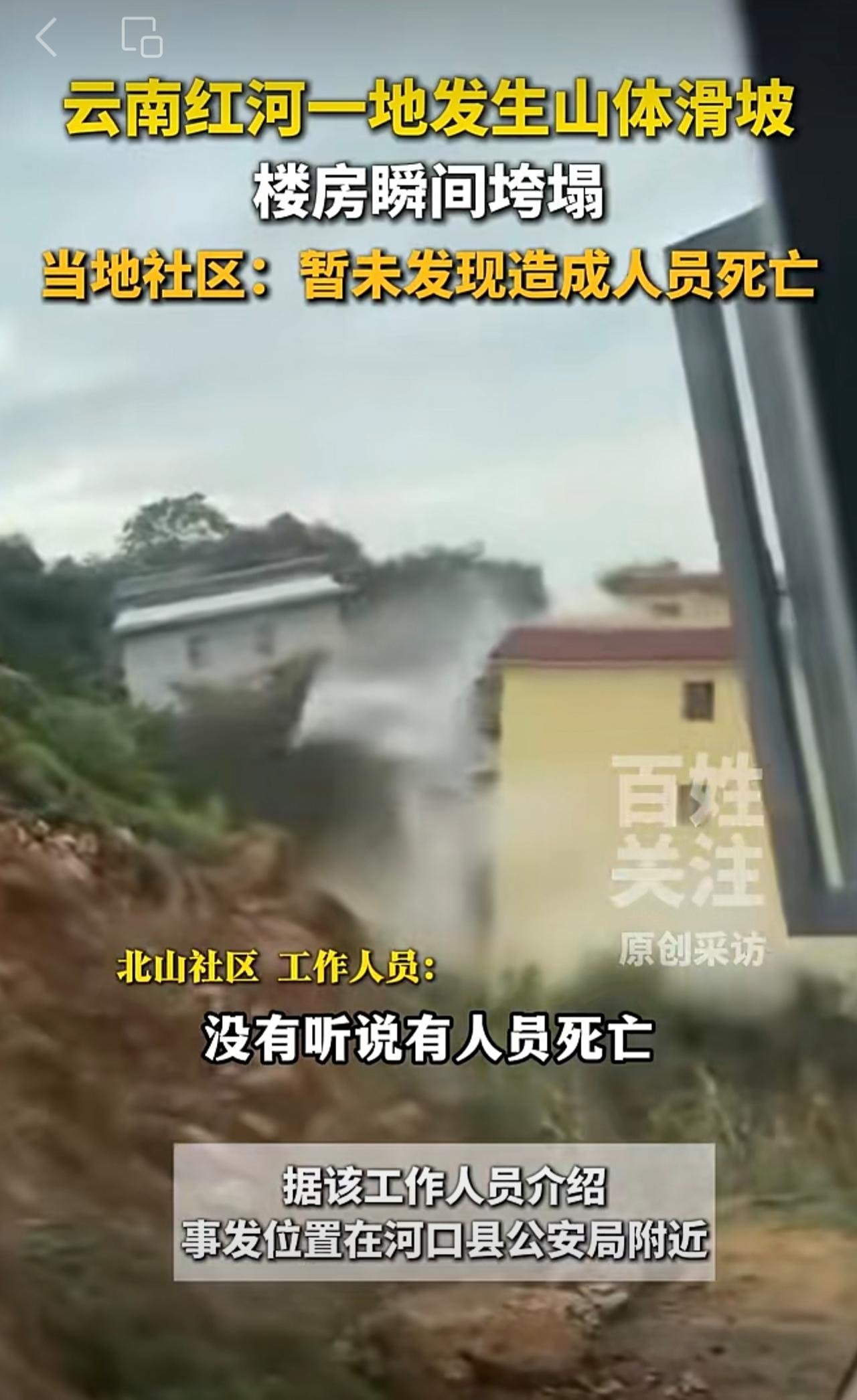 云南红河一地发生山体滑坡,楼房瞬间垮塌!当地社区:暂未发现造成人员死亡。