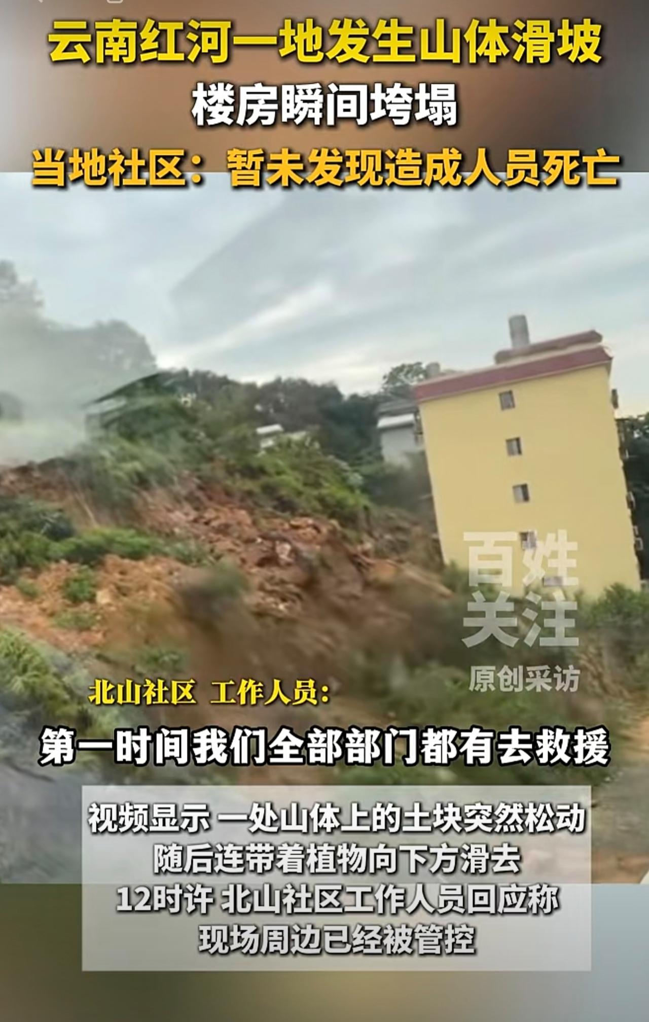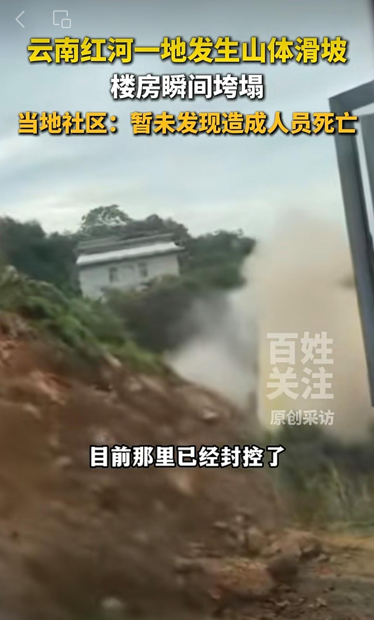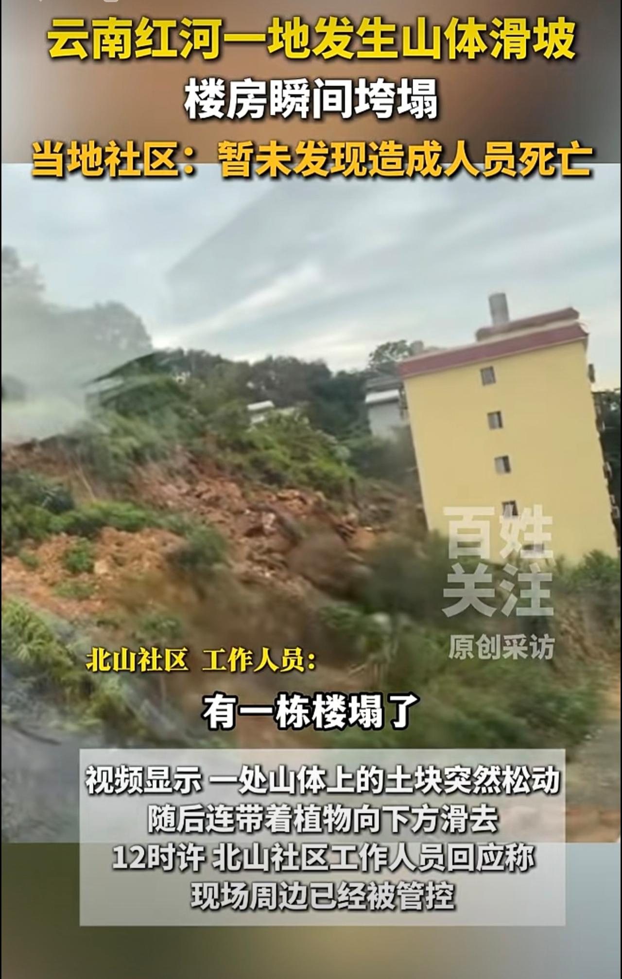 云南红河一地发生山体滑坡,楼房瞬间垮塌!当地社区:暂未发现造成人员死亡。