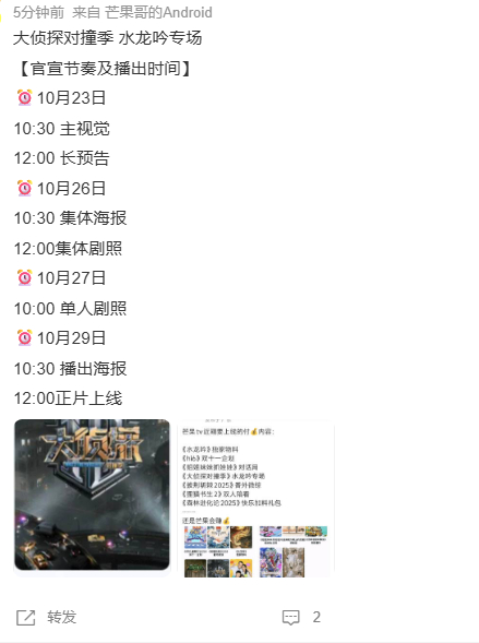 大侦探水龙吟专场官宣节奏张弛有度,从预约数据铺垫热度,再到案件结合江湖凶案调查的