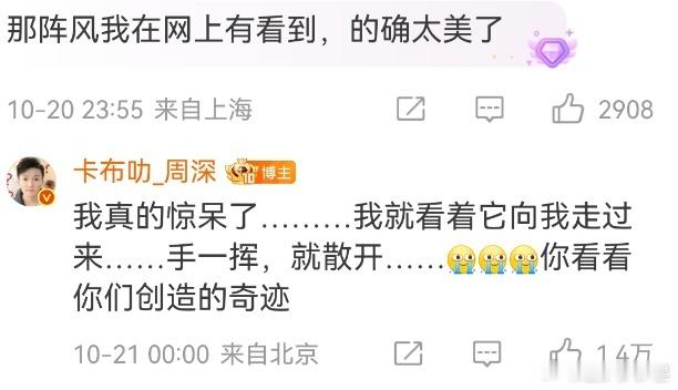 周深的仙气没想到这么写实周深演唱会惊现"风神"!福州站《浮光》现场,一阵旋风精准卡点,卷起彩带又潇洒散去。深深都看呆了:"这风是来伴舞的吗?"