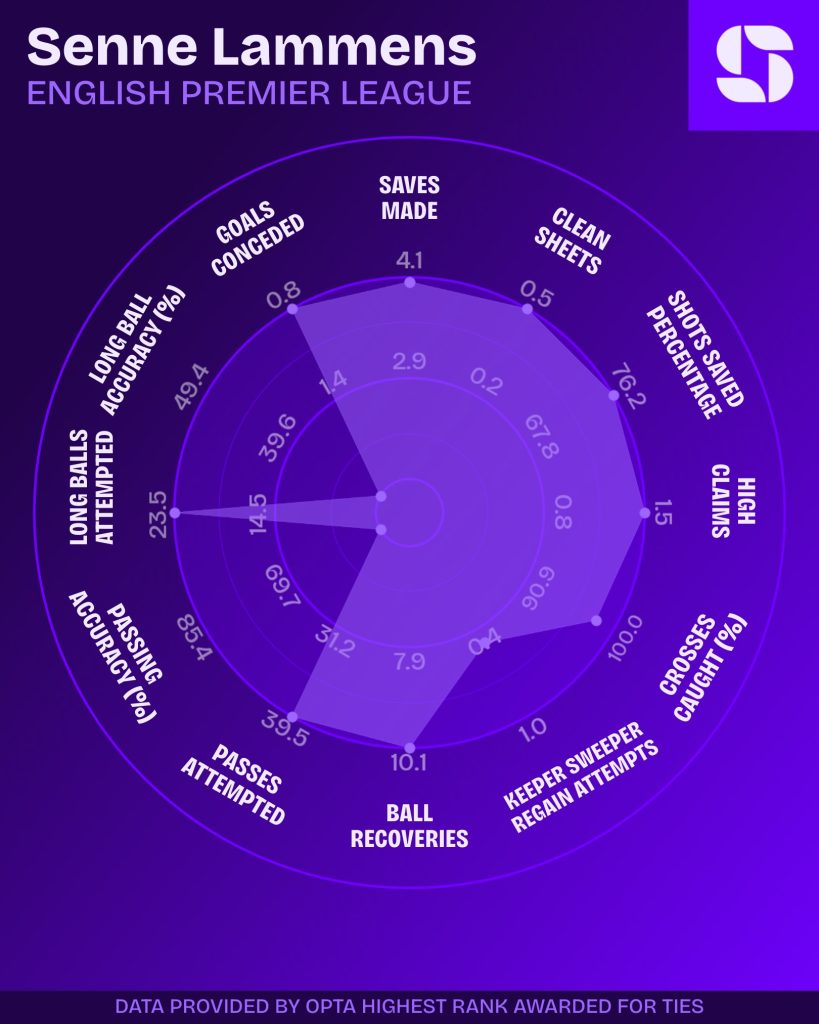 拉曼斯在曼联的出场的2场比赛中,平均每90分钟完成4.0次扑救。他每90分钟仅失球0.5个,并且每90分钟能成功解围2.0次传中。