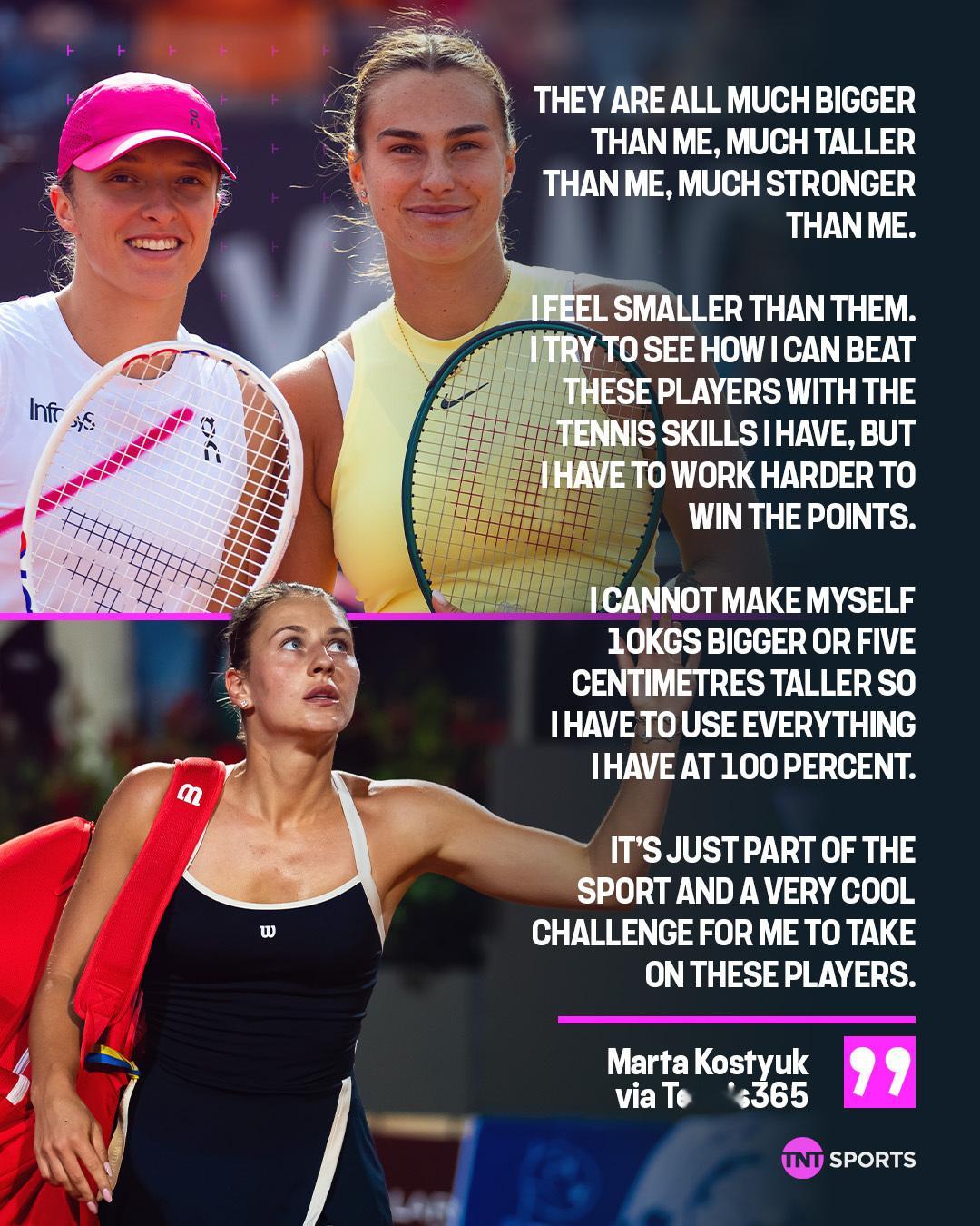 这段话一出,很多人搬出身高数据,科斯丘克1米75,而斯瓦泰克的身高不过也就1米76,而刚刚横扫了斯瓦泰克的武汉保总,官方身高只有1米63。。。