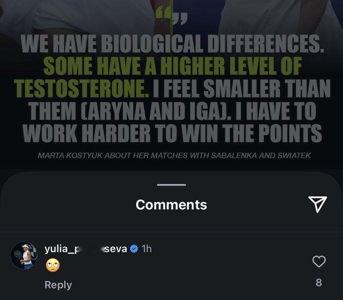 咳咳,在我印象中,自从辛吉斯二十年前因为一句“毛瑞斯莫像个男人”而引发巨大争议以来,女子网坛已经很久没人敢把话说到这份上了。。。随着这句话被传播开来,各方差评来得更猛烈了,就连普丁塞娃都在评论区留下了一个白眼🙄