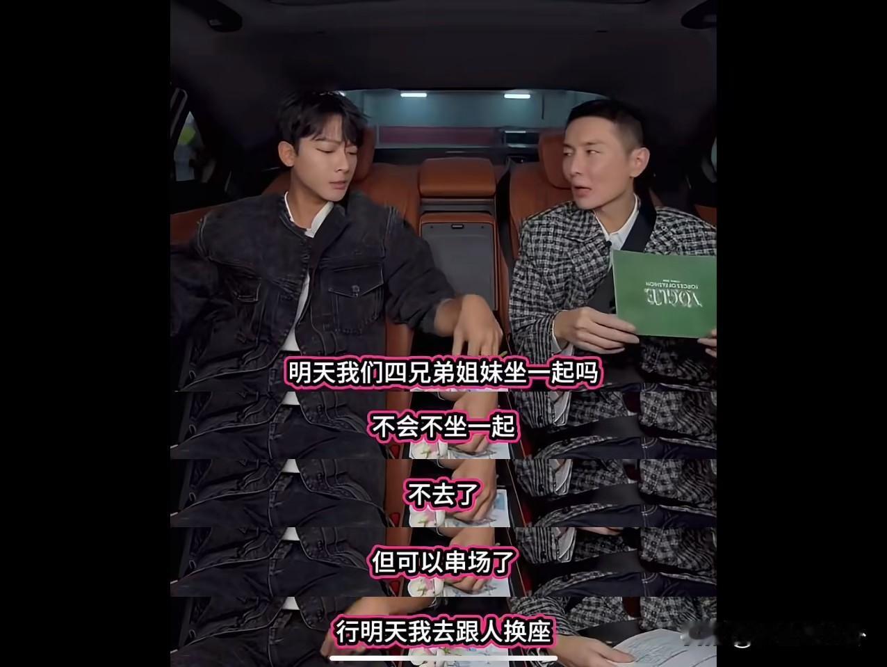 我敢说这季花少感情是最好的 不是因为他们在节目里表现的多和谐 而是因为他们在节目结束之后还那么挂着彼此。即将举行的Vogue盛典马思纯,张晚意,李沁和龚俊都要参加。 张晚意直接问主编刘冲 “明天我们花少四兄弟姐妹坐一起吗?” 刘冲 “不坐一起” 张晚意“那我不去了” 刘冲“你可以串场” 张晚意 “那明天我去找人换座” 想见彼此的心已经按耐不住了。