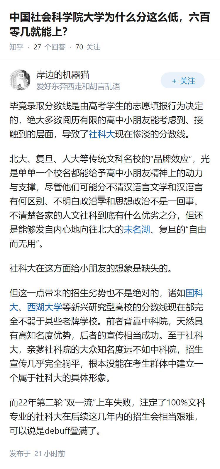 中国社会科学院大学为什么分这么低,六百零几就能上?