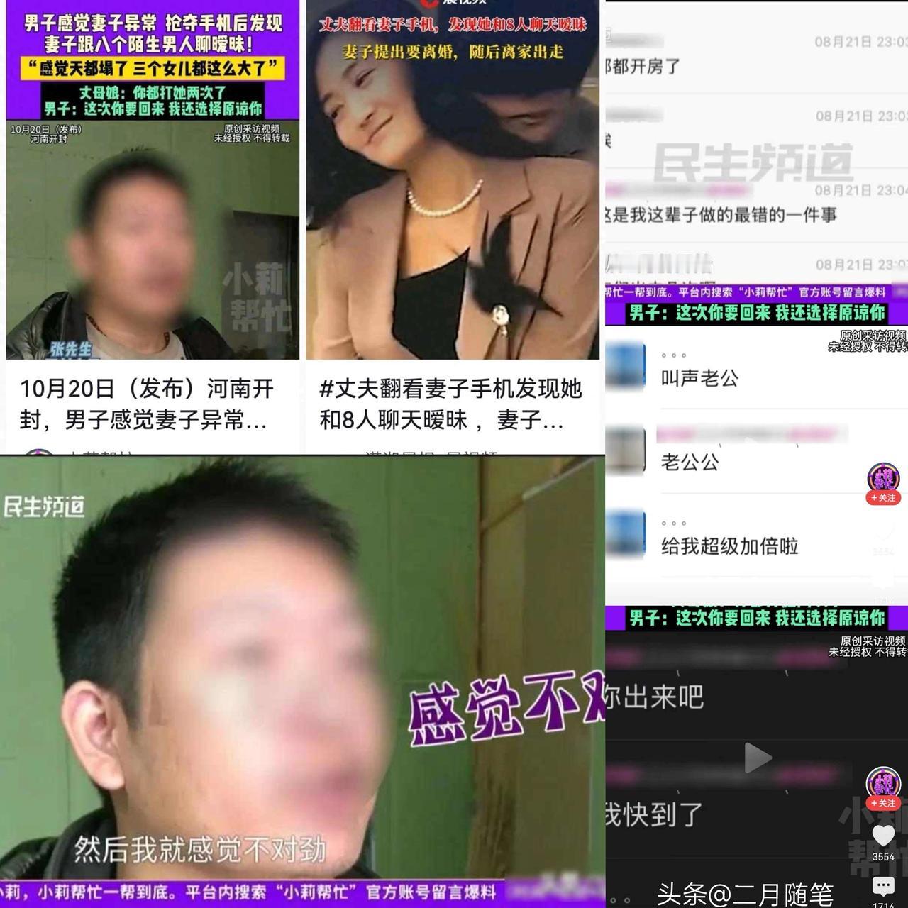 妻子与8人聊暧昧还私会, 内容曝光, 丈夫:天塌了,却祈求她回来! 她走后,这个家才真的塌了—— 哎, 刷到个新闻真是心里堵得慌! 河南开封的张先生, 常年在外打工, 好不容易回趟家, 不小心看到妻子手机里和8个男人的聊天记录, 内容露骨到看不下去! 他气疯了, 动手打了她, 可下一秒, 又扑通一声跪下来求她别走,哭着说“孩子不能没有妈”! 结果呢? 他妻子只冷冷回了一句“离婚”,转身就走, 再也没回来! 你说这是出轨吗? 我倒觉得, 这是一场早就凉透了的婚姻,最后那点体面也撕没了! 他一年到头不在家, 她一个人带三个孩子, 没人帮、 没人疼, 连句累都没人听她说! 她那些暧昧信息, 像是她憋不住了的发泄, 也是她对抗孤独的方式! 而他那一跪, 哪是爱得深, 是怕——怕家散了, 怕一个人扛不起三个娃, 怕被村里人笑话“连老婆都留不住”! 说到底, 是两个被现实压得喘不过气的人, 用最难看的方式, 把一段早已名存实亡的关系彻底埋了! 这样的结局真的太沉重了, 每段婚姻走到这一步, 背后都是说不尽的无奈! 听着真让人揪心! 聊天记录 妻子的聊天记录 情感聊天记录