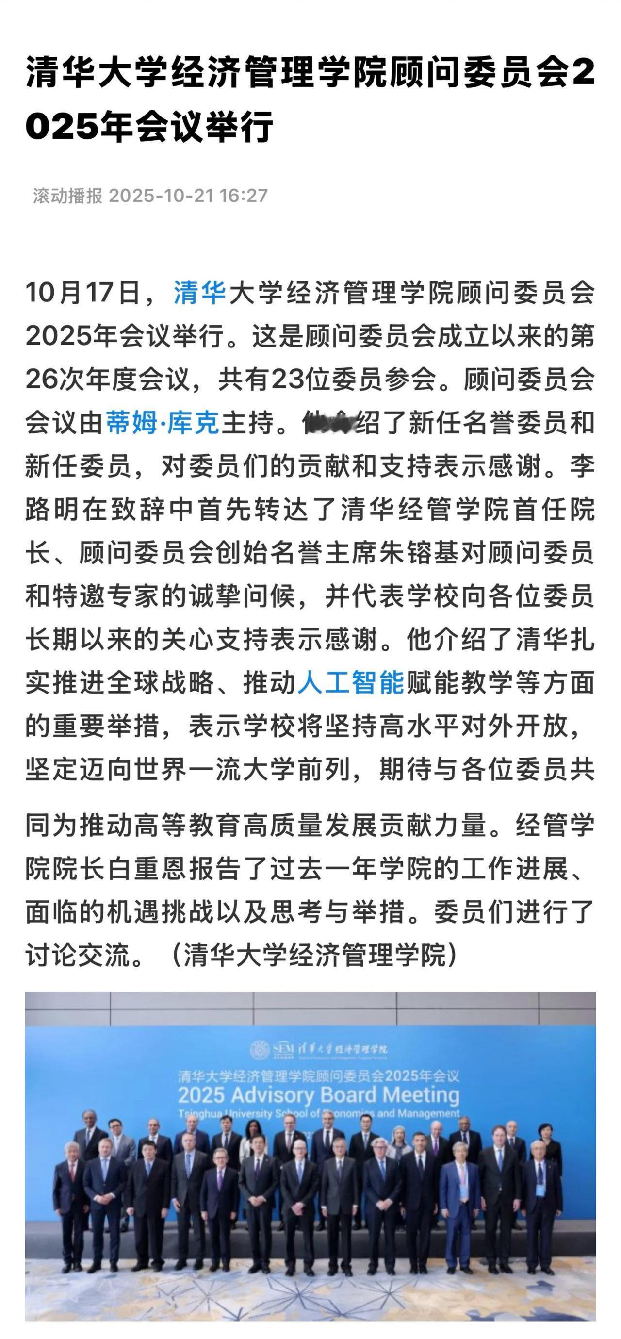 这是顾问委员会2000年成立以来的第26次年度会议,共有23位委员参会。 顾问委员会由苹果公司CEO库克担任主席,共有23位委员参会,包括耐克集团总裁贺雁峰、马赛地集团董事会主席康林松、盈科拓展集团创办人李泽楷、百度创始人李彦宏、腾讯公司主要创办人马化腾等。