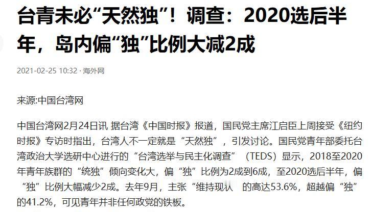 我们都错怪赖清德了。和平统一的关键阻碍,并不是他!而恰恰是那些我们以为在“拉拢”的“统派”!他们才是最危险的“战略麻醉剂”! 很多人一提到台湾问题,就把矛头对准赖清德,说他“台独”、说他“反中”,好像他一个人挡在那儿,两岸就统一不了。其实真要说清楚,赖清德并不是最大的问题。 真正拖住统一进程、最危险的那群人,恰恰是那些披着“统派”外衣、嘴上喊着“和平统一”的台湾政客。他们看起来像朋友,其实是麻醉剂,让人误以为有希望,结果反而更耽误事。 可那些号称“统派”的呢?就拿国民党来说,嘴上喊着“九二共识”,看着像两岸沟通的桥梁,实际上早把“统一”俩字从自己的字典里抠出去了。 2025年国民党选主席的时候,6个候选人里就张亚中敢提“两岸统一”,剩下的不是回避就是扯些“和平发展”的空话,连“九二共识”的核心是啥都说不清楚,郝龙斌甚至冒出“和中不舔”这种话,跟民进党那套几乎没区别了。 这哪是“统派”,分明是揣着明白装糊涂的“缓独”派,打着“和平”的幌子,干的全是拖延时间的活儿。 这些“假统派”最擅长的就是制造幻觉,让大家觉得“再等等说不定就有转机”,可这一等,就给了“文化台独”钻空子的机会。赖清德搞的“文化台独3.0”能这么顺利推进,背后少不了这些人的默许甚至配合。 他们嘴上不说“台独”,却看着赖清德通过“文化基本法”,把“台独”想法塞进法律里,看着他搞“再造历史现场2.0”,美化日本殖民历史,篡改台湾的过去,也不真站出来反对。 更讽刺的是,他们还跟着民进党学“亲美媚日”,抗战胜利纪念日当天,国民党的傅昆萁带着二十多个“民代”窜访日本,韩国瑜去日本更是用“报告”这种低三下四的词,把所谓的“统派”立场抛到九霄云外。 这种“暗独”比赖清德的“明独”阴多了,赖清德是抡着拳头硬来,他们是递着糖衣炮弹软磨,等大家反应过来,台湾年轻人的认同早就被悄悄改变了。 有组数据特别能说明问题,2020年选后半年,台湾青年偏“独”的比例降了2成,主张“维持现状”的占到53.6%,这说明年轻人根本不是天生的“独”,是能被引导的。 可这些“假统派”不仅不引导,反而跟着模糊“一中”概念,让年轻人觉得“维持现状”就是最好的选择。 邱毅早就说过,台湾台面上的“统派”大多是“假统”“投机统”,他们垄断着话语权,真正的统派声音发不出来,结果就是大家觉得台湾好像没人想统一了,其实是被这些投机分子骗了。他们就像温水里的青蛙,慢慢耗着,等水温升高了,再想跳出来就难了。 更要命的是,这些“假统派”还分裂了支持统一的力量。大家本来应该盯着“台独”这个共同目标,可他们打着“统派”旗号拉帮结派,把精力都用在争政治利益上,反而让赖清德这样的“明独”坐收渔利。 有学者早就点破了,民进党是“台独”,国民党是“独台”,一个明着来,一个暗着来,本质上都不提统一,没什么区别。就像有人说的,赖清德是“真小人”,这些“假统派”是“伪君子”,“真小人”的坏看得见,“伪君子”的坏藏在暗处,更难防备。 这些年大家总盼着通过“和谈”解决问题,可“和谈”得有真正愿意谈统一的对象才行。 现在看来,这些“假统派”根本不是谈统一的料,他们只是想靠着“统派”的招牌捞好处,等捞够了就换个说法继续拖。 张亚中骂他们“天天在拖,天天在混,天天在骗老百姓”,这话一点没夸张,他们拖一天,“文化台独”就多渗透一天,统一的成本就高一分。赖清德再折腾,改变不了两岸同属一中的事实,可这些“假统派”的拖延战术,却实实在在给统一添了堵。 别再被“假统派”的花言巧语骗了,他们的“和平”不是真和平,是“拖到变味”的和平;他们的“共识”不是真共识,是“模糊到消失”的共识。 赖清德再跳,也掀不起大浪,可这些“战略麻醉剂”却能让大家在等待中失去警惕。统一从来不是等出来的,是靠实力争取来的,等我们看清这些“假统派”的真面目,不再被他们的幻觉迷惑,用真真切切的实力塑造两岸格局,统一的那一天才会真正到来。 毕竟,靠嘴皮子的“假和平”撑不了多久,靠实力守护的真统一才稳如泰山,这才是最该明白的道理。