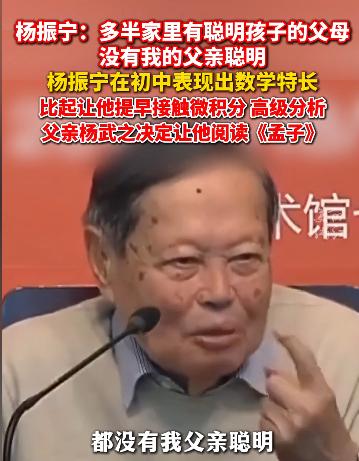 本以为杨振宁就是天花板了,没想到的他父亲的身份更是好家伙,中国第一个数学博士,清华大学数学系主任。他教过的学生名单拉出来,俩名字就够了:陈省身,华罗庚。 对,就是数学课本上那俩。   提到杨振宁,多数人会立刻想到“诺贝尔物理学奖”“与爱因斯坦比肩”这些标签。   在大众认知里,能在物理界闯到这个份上,早该是一个家族的“巅峰”。   可要是翻开他父亲杨武之的人生档案,才会发现这份“厉害”早有源头。   中国第一位专攻数论的数学博士,亲手撑起清华大学数学系的早期框架,就连课本里频繁出现的陈省身、华罗庚,当年都曾坐在他的课堂里听群论课。   这位看似低调的数学家,不仅在近代中国数学史上砸下了第一块基石,更用一辈子的言行,养出了能跨越三代的家族家风。   1923年,安徽有了公费留美名额,27岁的杨武之抱着“把真学问带回来”的念头报了名。   初到美国,他先在斯坦福大学补基础,发现自己对“数论”最感兴趣,又转去芝加哥大学。   那里有当时世界顶尖的数论专家L.E.迪克森,为了跟上进度,他每天泡在图书馆12小时以上,连圣诞节都在啃《数论讲义》。   1928年,他的博士论文《华林问题的各种推广》通过答辩,成为中国历史上第一个靠数论研究拿到数学博士的人。   彼时国内数学界还处在“翻译国外教材”的阶段,他的这篇论文,直接让中国数论研究跟上了国际步伐。   回国后的杨武之,成了“拓荒者”。   1929年他到清华大学算学系任教时,系里连一本完整的数论教材都没有。   他干脆把自己在美国用的英、德文专著拆开,每天晚上在书房里逐页翻译,遇到复杂的公式,就用毛笔在宣纸上画出来,第二天带着这些“散装讲义”去上课。   学生们后来回忆,杨老师讲课从不用华丽辞藻,却能把抽象的群论讲成“看得见的规律”,连基础差的学生都能跟上。   更难得的是他的“识才眼”,1931年,他看到一篇署名“华罗庚”的论文,里面对一个数论问题的解法比国外学者更简洁。   后来,他不仅把华罗庚请到清华当助理,还亲自带他读论文,甚至把自己的研究课题分给他做。   正是这份提携,让华罗庚从杂货店伙计变成了后来的“中国现代数学之父”。   陈省身当年在清华犹豫要不要转几何方向,也是杨武之找他长谈,建议他“去研究能站得住脚的基础理论”,还帮他联系了德国的导师,这才有了后来的“微分几何之父”。   杨武之教学生有魄力,教自己孩子却格外“慢”,这份“慢”里藏着他的教育智慧。   杨振宁不满一岁时,杨武之就赴美留学,家里只剩妻子罗孟华带着孩子。   罗孟华虽没上过新式学堂,却念过私塾,深知“识字是根基”。   她把方块字写在硬纸板上,做成卡片,每天晚上抱着杨振宁认两个字,遇到“山”“水”这样的字,还会指着窗外的景色解释。   就这么坚持了一年多,杨振宁4岁时已经能认3000多个字,能自己读《三国演义》的简写本,这在当时,比很多小学毕业生的识字量还多。   等杨武之回国,发现儿子总喜欢翻自己书架上的数学书,却没急着教他微积分。   相反,他找了清华历史系的高材生丁则良,特意嘱咐,不用教复杂的,就带他读《孟子》,要让他能背下来。   1957年,杨振宁拿了诺贝尔物理学奖,第一时间给父亲打越洋电话报喜。   可这份喜悦,后来却因为“国籍”成了父子间的疙瘩。   杨武之亲历过抗日战争,看着国家在战乱中残破,早就把“报国”刻进了骨子里。   1964年,他听说杨振宁加入了美国籍,气得把手里的茶杯都摔了,给杨振宁写了封信,字里行间满是失望。   后来父子在日内瓦见面,杨武之提起这事,还是红着眼说,我这辈子没求过你什么,就求你别忘了根。   1973年,杨武之去世前,给杨振宁留了一张字条,上面写着“每饭勿忘亲爱永,有生应感国恩宏”。   这两句诗,杨振宁后来裱在书房里,每次看到都忍不住落泪。   其实这份家国情怀,早就在杨家孩子身上扎了根:杨武之的次子杨振汉,西南联大毕业后留美做研究。   后来国内需要先进的物理实验设备,他顶着美国的封锁,偷偷把技术资料复印下来,托人带回国内。   四子杨振平在美国当教授,专门帮国内高校设计实验室,还常带美国学生来中国交流,说“要让他们知道,中国的科研也很厉害”。   2015年,93岁的杨振宁做了个决定,放弃美国籍,恢复中国籍,回到清华大学定居。   现在再看杨武之,“中国第一个数学博士”“清华系主任”这些头衔,其实都不是他最珍贵的遗产。   真正厉害的,是他传下来的那份家风:是做学问要踏实的“拙劲”,是心里装着家国的“热劲”,是把知识当成“薪火”的“韧劲”。   杨振宁能成为物理巨擘,不只是因为天赋,更是因为从小被这份家风“养”着,杨家的孩子能各有成就,也因为这份家风早成了他们的“人生底色”。