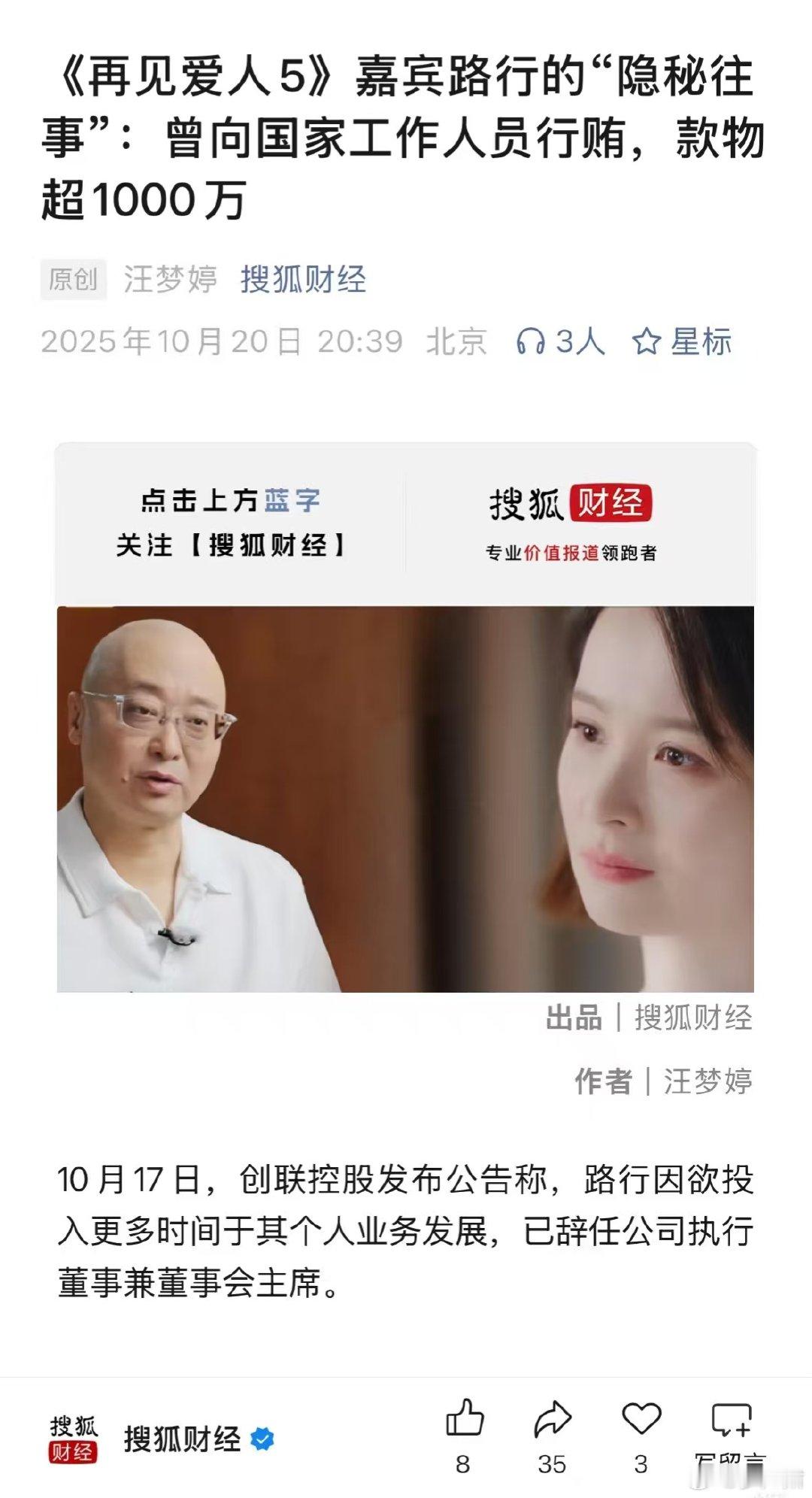 《再见爱人》推迟上线,疑与路行涉行贿争议有关。