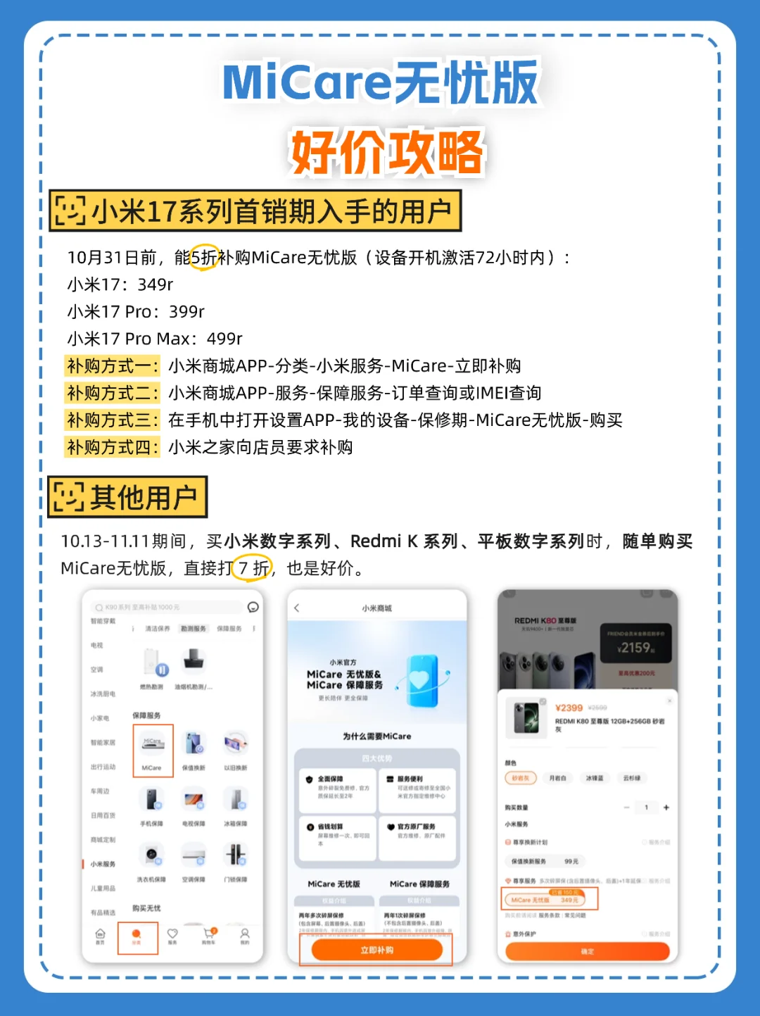 📍17系列⾸销期⼊⼿的宝⼦,10⽉31⽇前能5折补购MiCare⽆忧版: