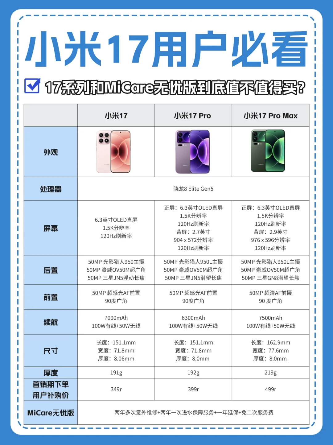 这次准备⼊⼿⼩⽶17Pro,⾸先考虑的就是要不要顺便买个MiCare⽆忧版,这样就能放⼼“裸奔”了。做了很多功课,今天给⼤家解析⼀波MiCare⽆忧版到底是啥,值不值得买。