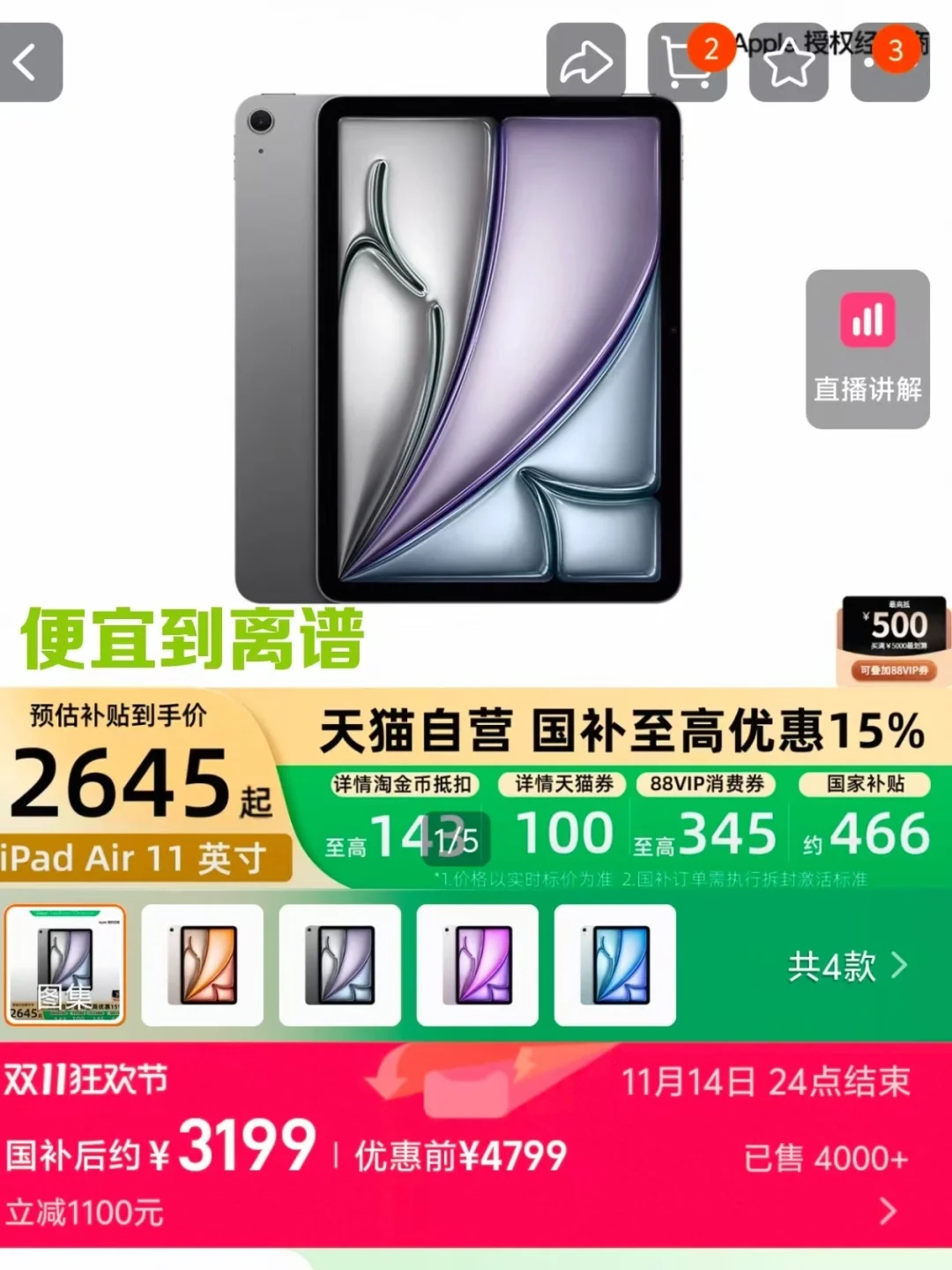 真的太震惊了‼️以前花原价4799买iPad Air的我真的是大冤种,现在某🐱国补叠加猫猫币等等优惠可以2645元拿下