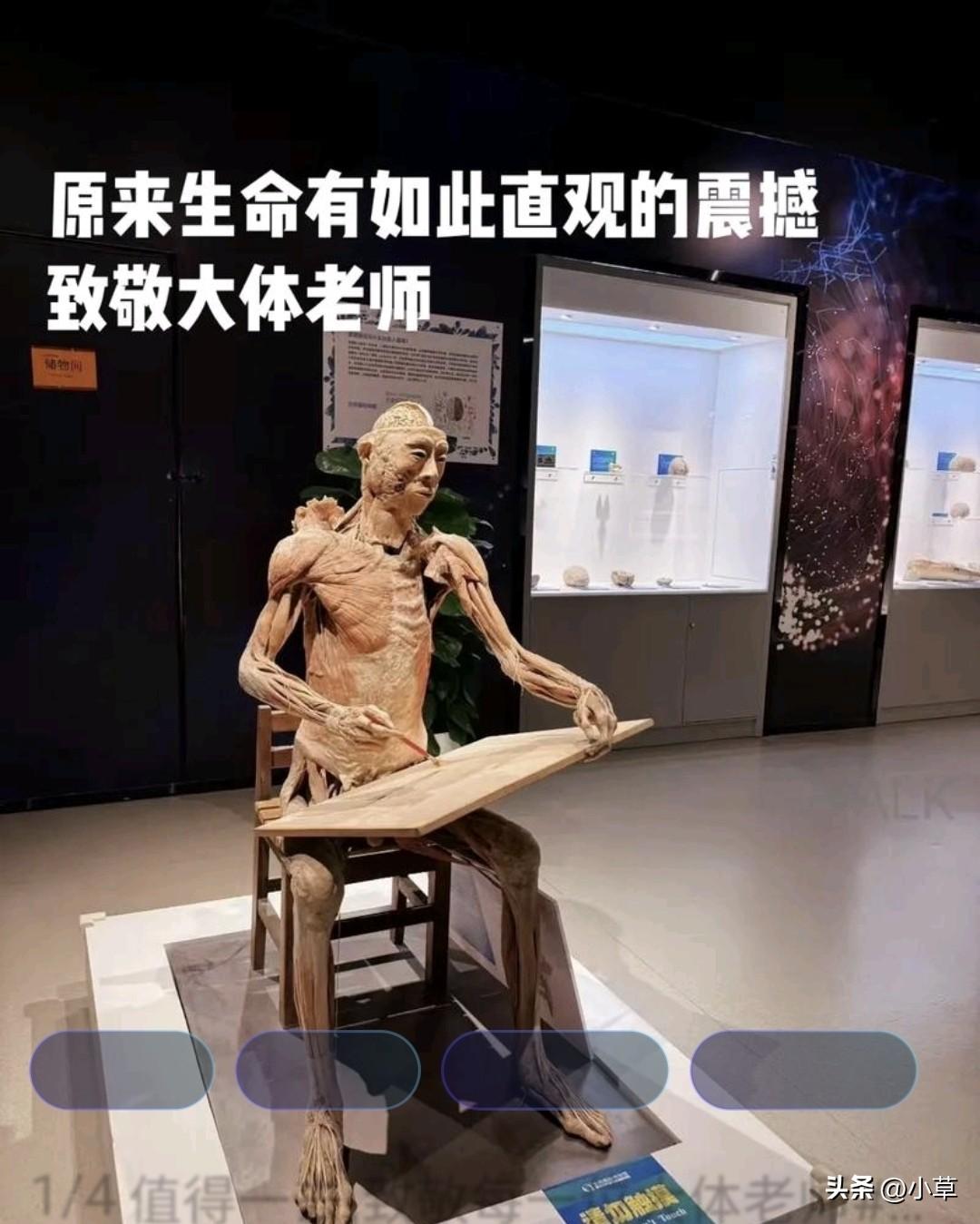 最近,我看到了关于“大体老师”的视频,内心十分震撼。 这些“大体老师”的遗体大多陈列于展馆之中…… 他们生前自愿捐出自己的遗体,以供医学生开展人体解剖的学习与研究。 “大体老师”是医学界对遗体捐献者的尊称, 这一称呼饱含着对捐献者的敬重,凸显了他们无私奉献的崇高精神。 他们真的太伟大了,可以把自己身体捐出来…… 向他们致敬[蜡烛][蜡烛][蜡烛] 据说北京某美术馆里也有…… 不知道是不是真的? 大体标本