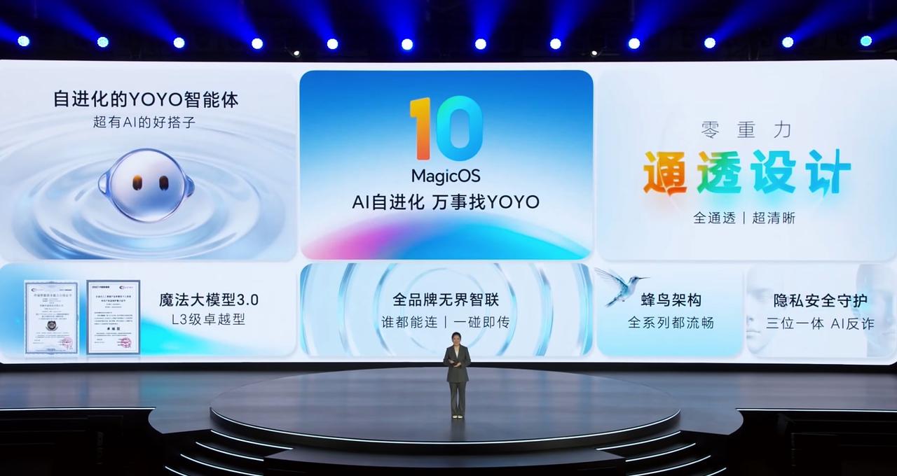 荣耀MagicOS 10支持全品牌换机克隆,蜂鸟架构首发,滑动/启动更快,抢票更快,最高支持55GB空间增加 安全隐私方面,MagicOS 10首发AI通话反诈功能,AI诈骗话术检测,弹窗和震动提醒用户;AI合成假音检测;AI合成视频检测;《AI隐私安全白皮书》发布 AI自进化,万事找YOYO,MagicOS 10升级计划发布