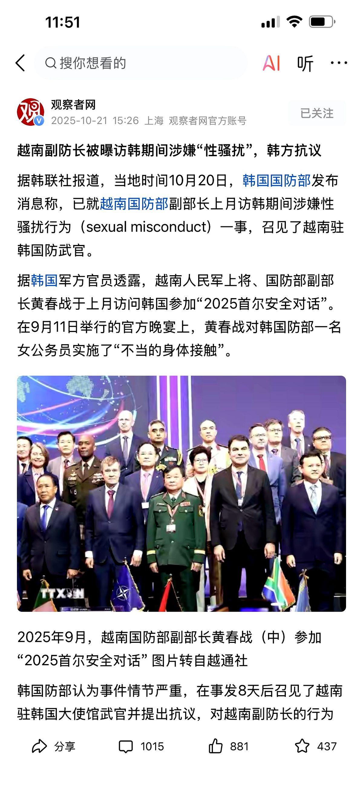 越南防长?立功了?哈! 不是靠导弹,不是靠演习是靠睡出来的?扯淡! 可你细琢磨……不对。人家那是玩命。 一个将军,装孙子,陪笑脸,钻被窝就为了抠出几句真话。这不是色诱,这是拿命赌!赌输了,身败名裂;赌赢了,功劳簿上添一笔。你说这活儿,谁干? 我当年在酒泉见过一个搞电子对抗的老兵,三天三夜不睡,就为截一段敌台信号。眼珠子血红,手抖得点不着烟。那种狠劲儿……跟这越南将军,一个路子。 人家韩国女间谍?呵,训练有素,嘴比保险柜还严。可再严,也架不住枕边风刮一个月。不是一次,是整整37天!天天演,夜夜熬。你懂那种感觉吗?就是……明明恨得牙痒,还得笑出声,还得说宝贝你真美。 操!这哪是情报战,这是精神凌迟! 起初我骂丢人!堂堂将军干这事儿?可转念一想敬佩。真他妈敬佩。两弹一星那代人啃窝头搞科研,现在人家拿尊严换情报,骨子里都是一个字扛!扛住卡脖子,扛住封锁,扛住这操蛋的世界。 人家可是民主灯塔,间谍经费烧得跟印钞似的。咱们呢?省吃俭用搞举国体制,一毛钱掰八瓣花。可你发现没?越是穷地方,越出狠人。 我猜下一步,河内要动真格了。边境雷达网肯定要升级,说不定还偷偷摸了韩军通信频段。这事儿没完。 不是我不明白,这世界变化快可有些东西,变不了。比如,玩命的人,永远比耍嘴皮子的走得远。 快。准。狠。 炸了。修了。再炸。 这才是活路。