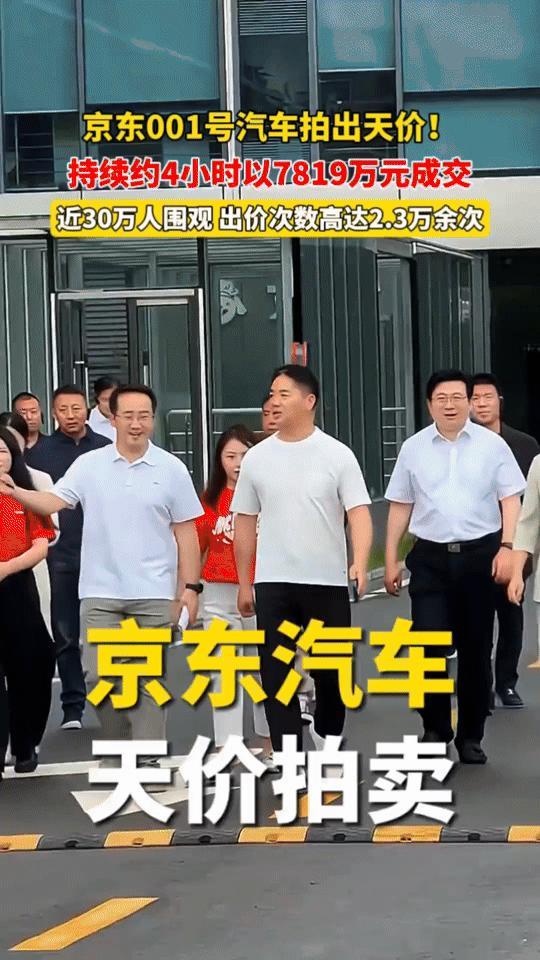 惊了!京东这辆车拍出7819万,近30万人围观抢着出价 谁能想到,一辆“国民好车”能拍出7819万元的天价?京东001号汽车的拍卖现场,近30万人在线围观,2.3万余次出价厮杀了约4小时,最终成交价比市场价翻了近80倍! 看着拍卖界面里不断跳动的数字,网友们炸开了锅:“这是拍了辆‘移动豪宅’吧?”“近30万人围观,就为看谁当‘冤大头’?” 虽说这价格离谱得让人咋舌,但这场全民参与的拍卖盛宴,属实把“热度”玩明白了——原来汽车拍卖还能这么刺激!
