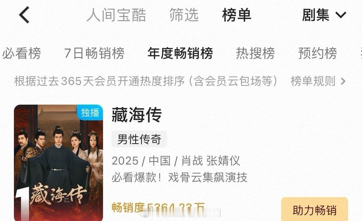 一番大爆剧《藏海传》自5月播出后以惊人速度刷新优酷拉新纪录登顶历史冠军!