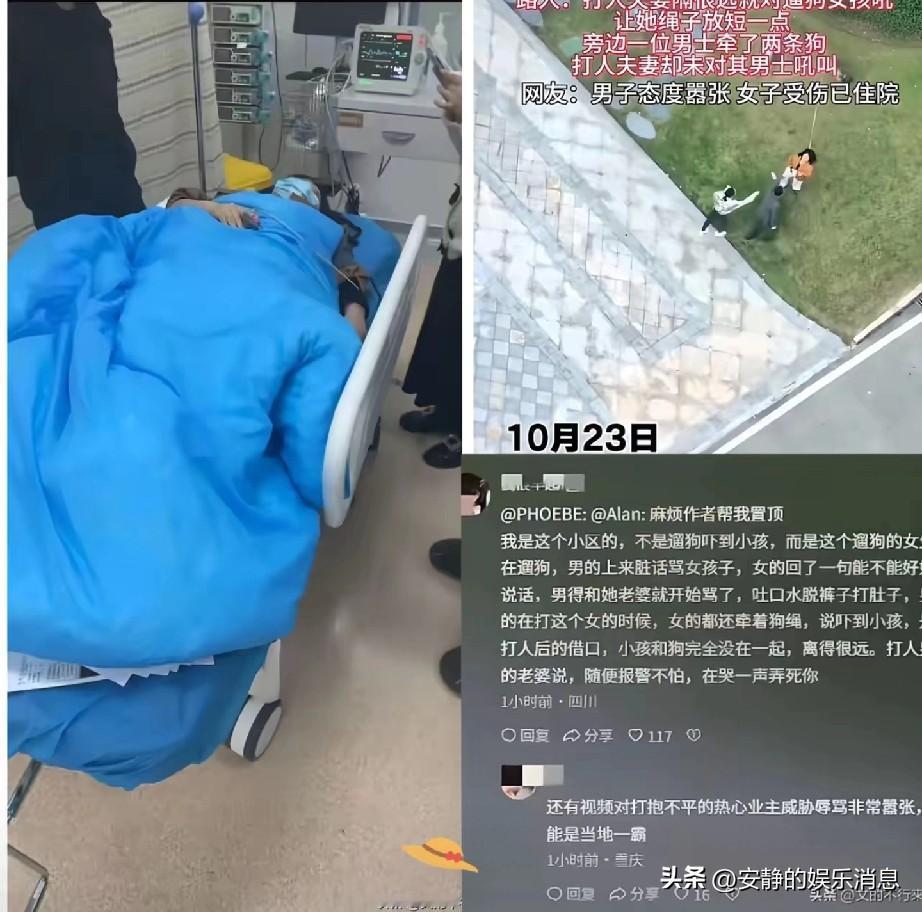 重庆遛狗女子被打事件最新通稿出炉。这次打人的真正原因并不是因为狗没栓绳子,或者说狗吓到别人家小孩了,而是因为狗绳子影响了他们走路。 打人原因曝光后,很多网友说法不一,有的说说不就是打了几下耳光吗?至于闹得这么凶吗?也有目击者称,当时男的上来就骂脏话,骂得特别难听,女的气就跟他理论几句,没想到男的就动手了,女的也就还手了,就打起来了。之后那个男的老婆一直在劝架但是劝不住。 目击者补充道:最可怕的是那个男的放狠话说:不怕报警,再哭一声弄死你。看完这条通稿,有网友表示心寒,这还是人做的事吗?动不动就打人,真的是不能轻饶。也有网友说,这种人应该判刑才行,不然无法制止。如此施暴行为,法律真的应该重拳出击,给打人者一个狠狠的惩罚,让更多人看在眼里,也让更多人不敢做此行为,你说呢?