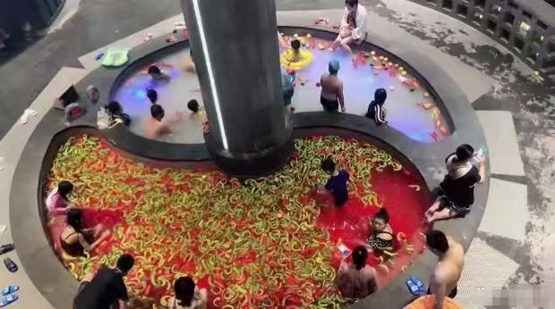 惊呆了,这鸳鸯火锅竟然“烫”的是人[捂脸] 这位黑龙江老板也是脑洞大开! 这真的会有市场吗❓️ 汤池里的都是真的辣椒茄子等蔬菜 说辣椒水可以缓解疲劳, 促进新陈代谢! 红汤加了玫瑰花, 我觉得这个倒是靠谱 鲜花泡澡倒是可以舒缓的! 牛奶锅里加的肯定是牛奶了 这个应该也不错 好想去体验! 整个汤池也是火锅造型 逼真度100分 能玩[赞][大笑] 但千万别进小孩, 我怕有撒尿牛丸汤[捂脸]