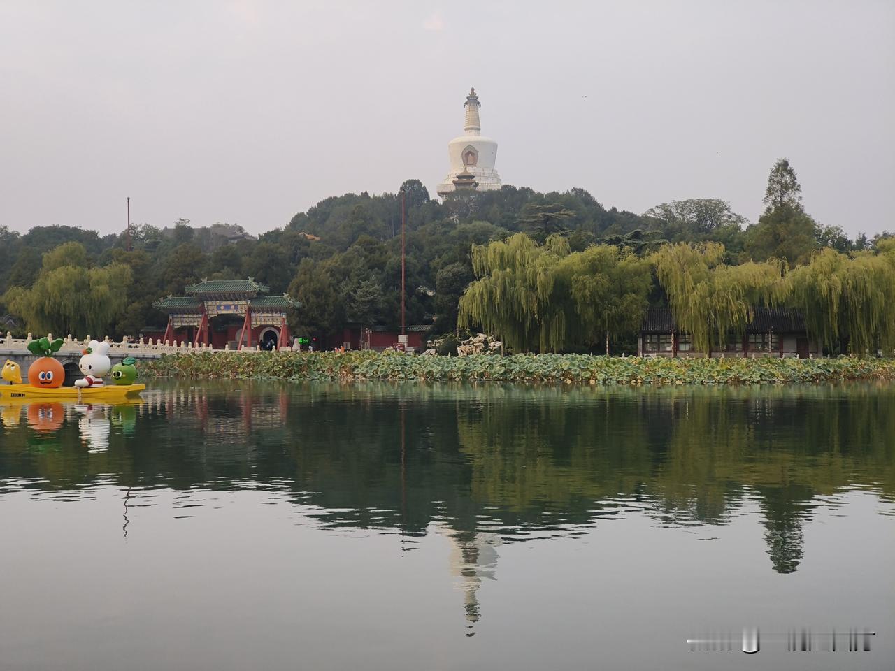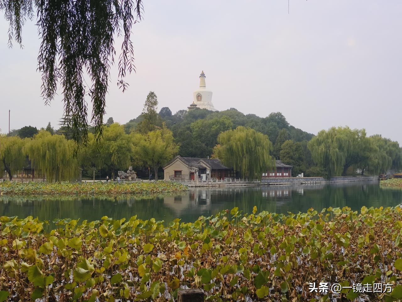 黄昏时分的北海公园,现在进湖心岛的永安寺和近观白塔都要另外收费。