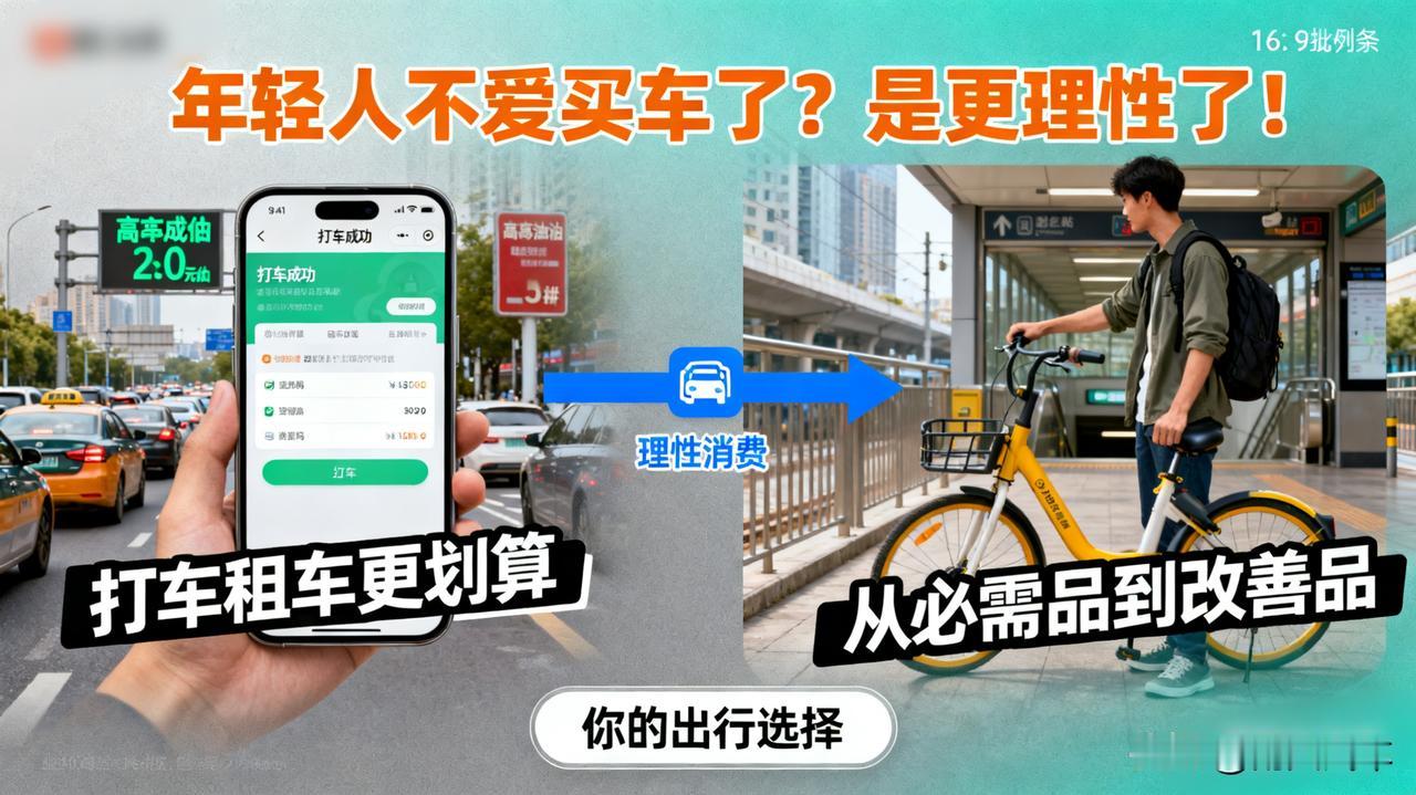 年轻人不爱买车了?不是不爱,是更理性了! 不是买不起,是觉得不划算。堵车、停车难、油价高,不如打车、租车方便。 除非有强烈的家庭或面子需求,否则汽车对很多年轻人来说,正从“必需品”变成“改善品”。 买车心理 年轻人选车 全球汽车消费观 买车喜好 中国汽车消费 车市现状 购车喜好