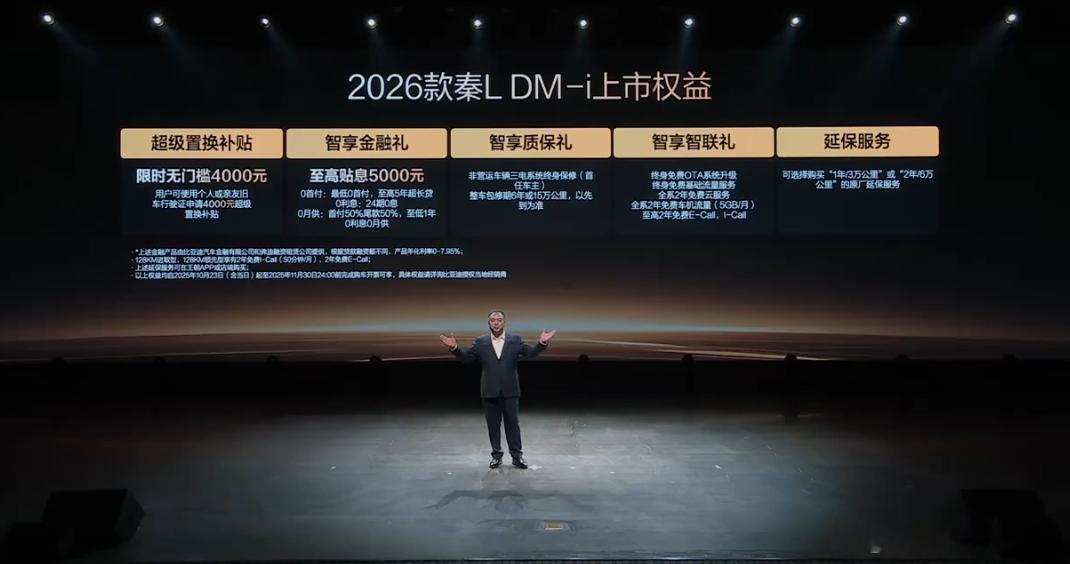 10月23日,比亚迪举办秦宋2026款上市发布会,2026款秦L DM-i正式上市,新车共推出两款车型,超级置换权益后限时售价分别为9.28万元、10.28万元。