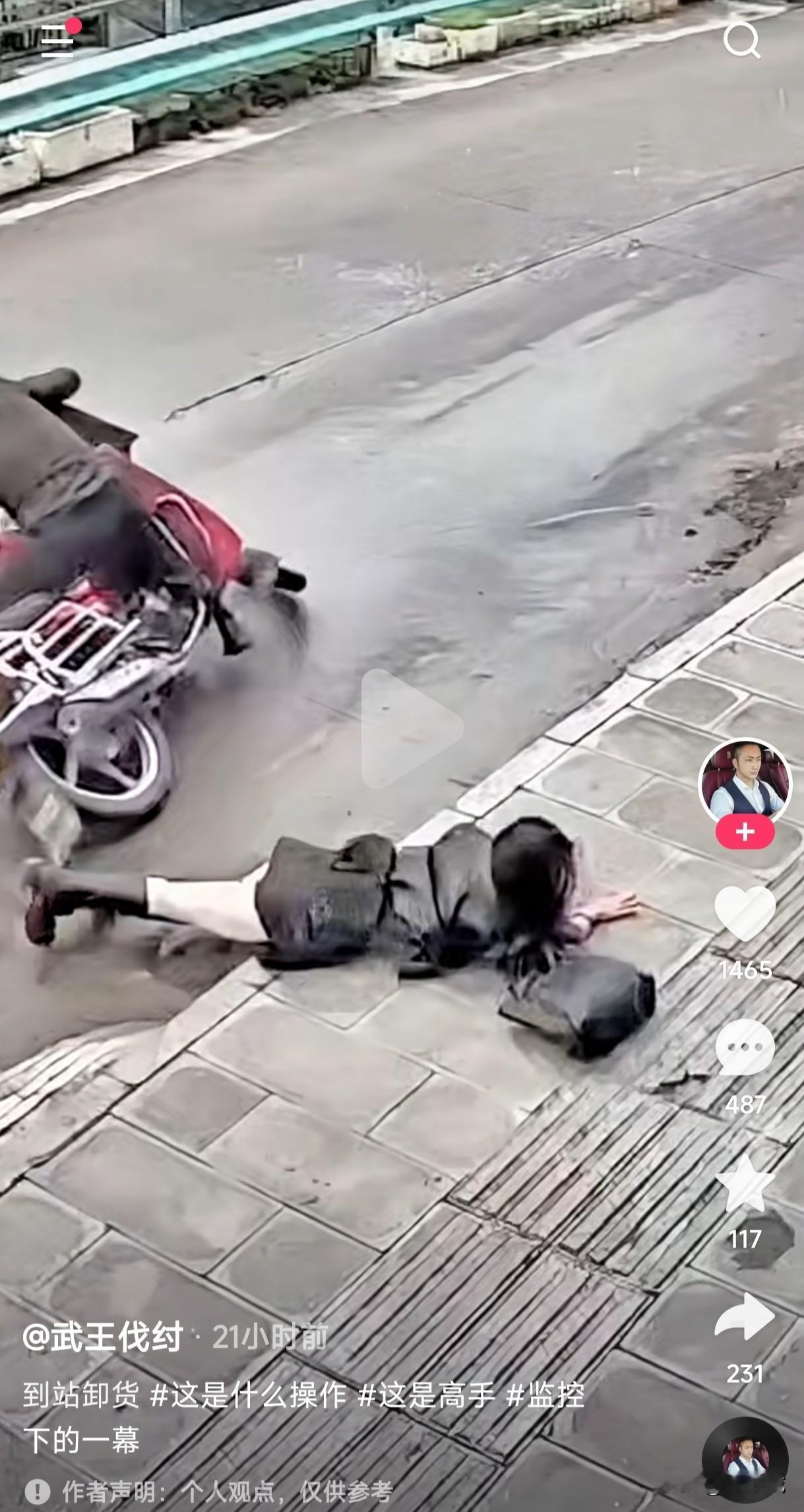 古有飞蛾扑火 你这是现代版的美女扑街吗 不过这扑的也有点太狠了吧 这把衣服扑烂了都是小事 你扑的如此之猛 这万一磕着碰着了咋办 幸亏在落地的那一刻你抬头了 这要是面部朝地还不得破相了 其它部位有衣服护着顶多擦破点皮 这摩的师傅也有点猛 到站就卸货的方式太粗暴了 你就不能慢点骑车吗 你看把美女都摔懵了 这到站了突然摔了 这车费还付吗