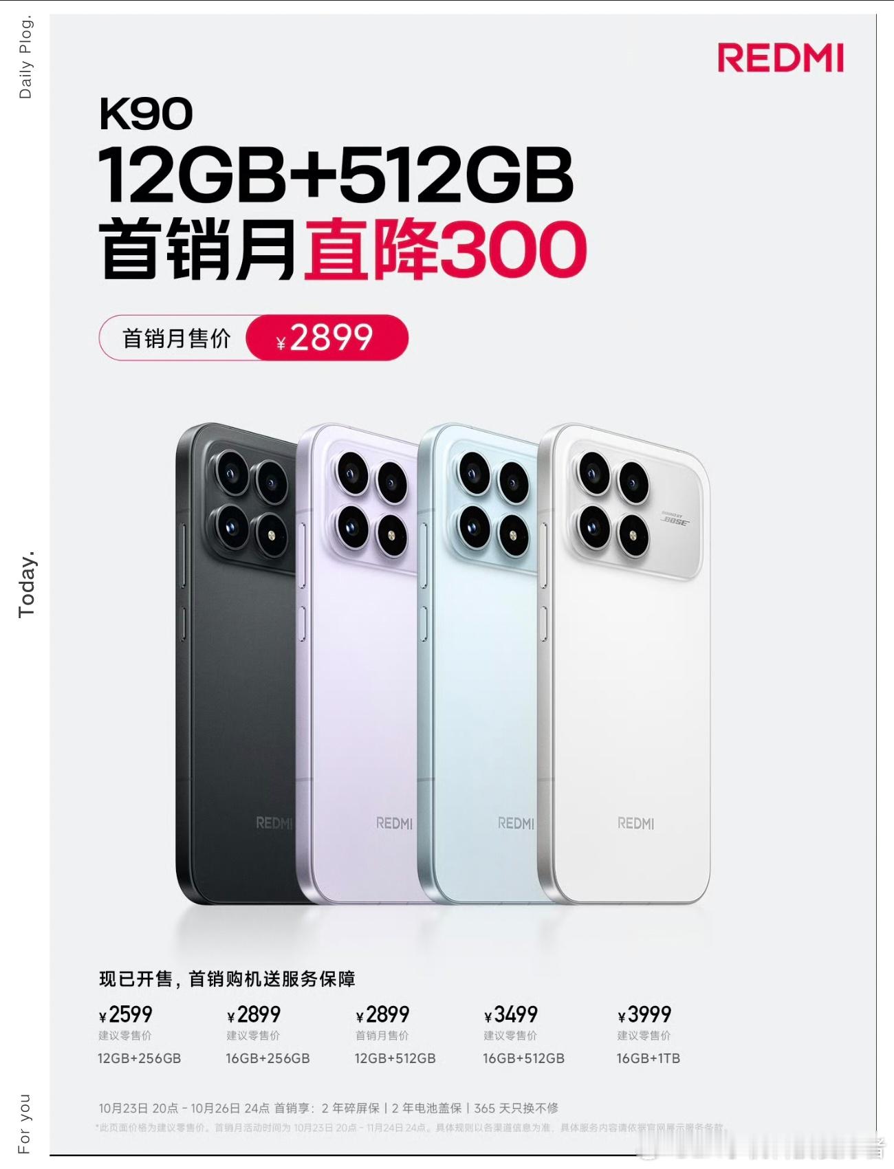 不过,在收到反馈后,红米K90标准版12GB+512GB版本首销月降价300元,变成了2899元。这个配置买的人比较多,也是销量主力,这次限时调价大家应该能满意吧。