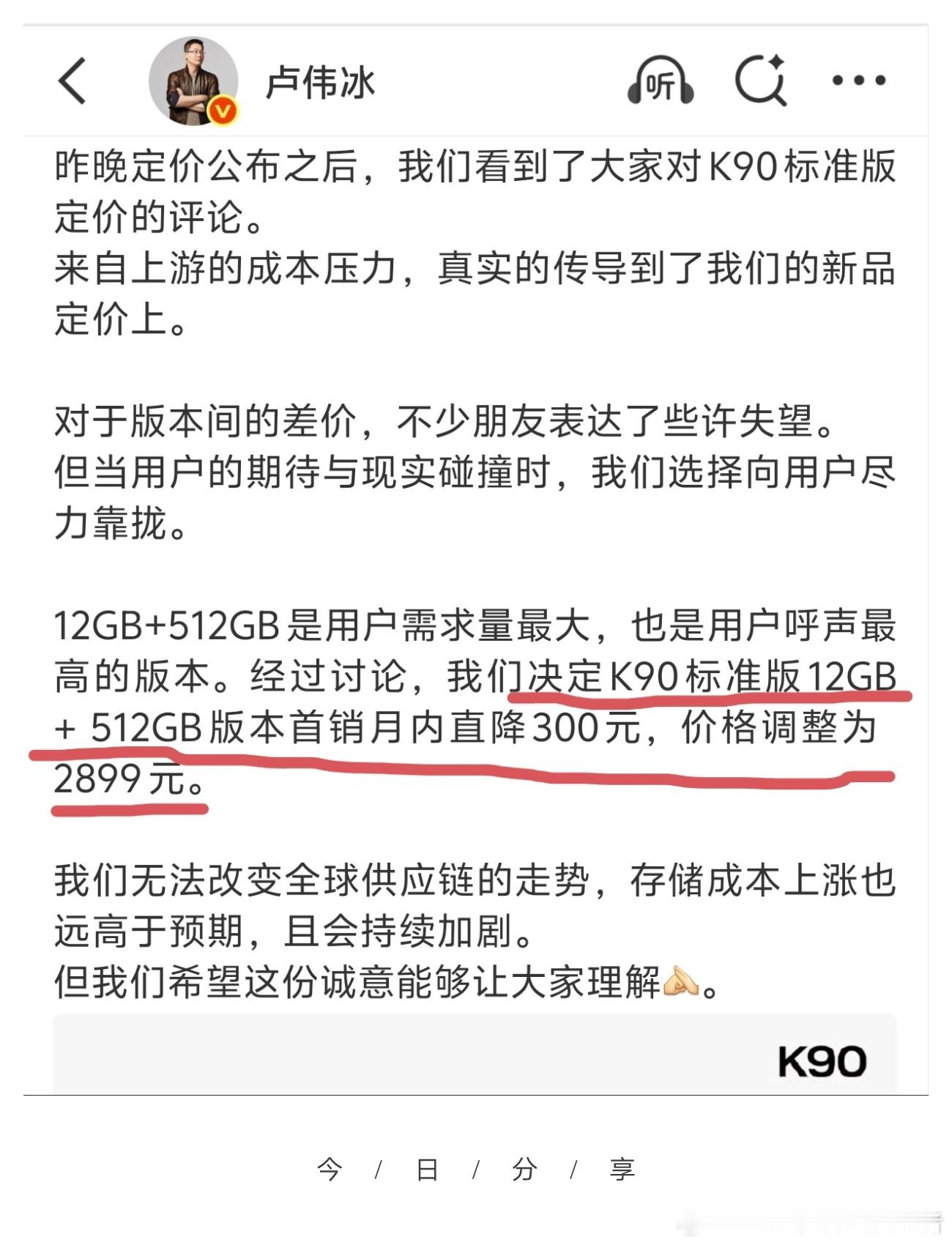 今年存储都涨价了,每个手机品牌都上调了起售价,去年那价格很难了。雷军回应K90定价