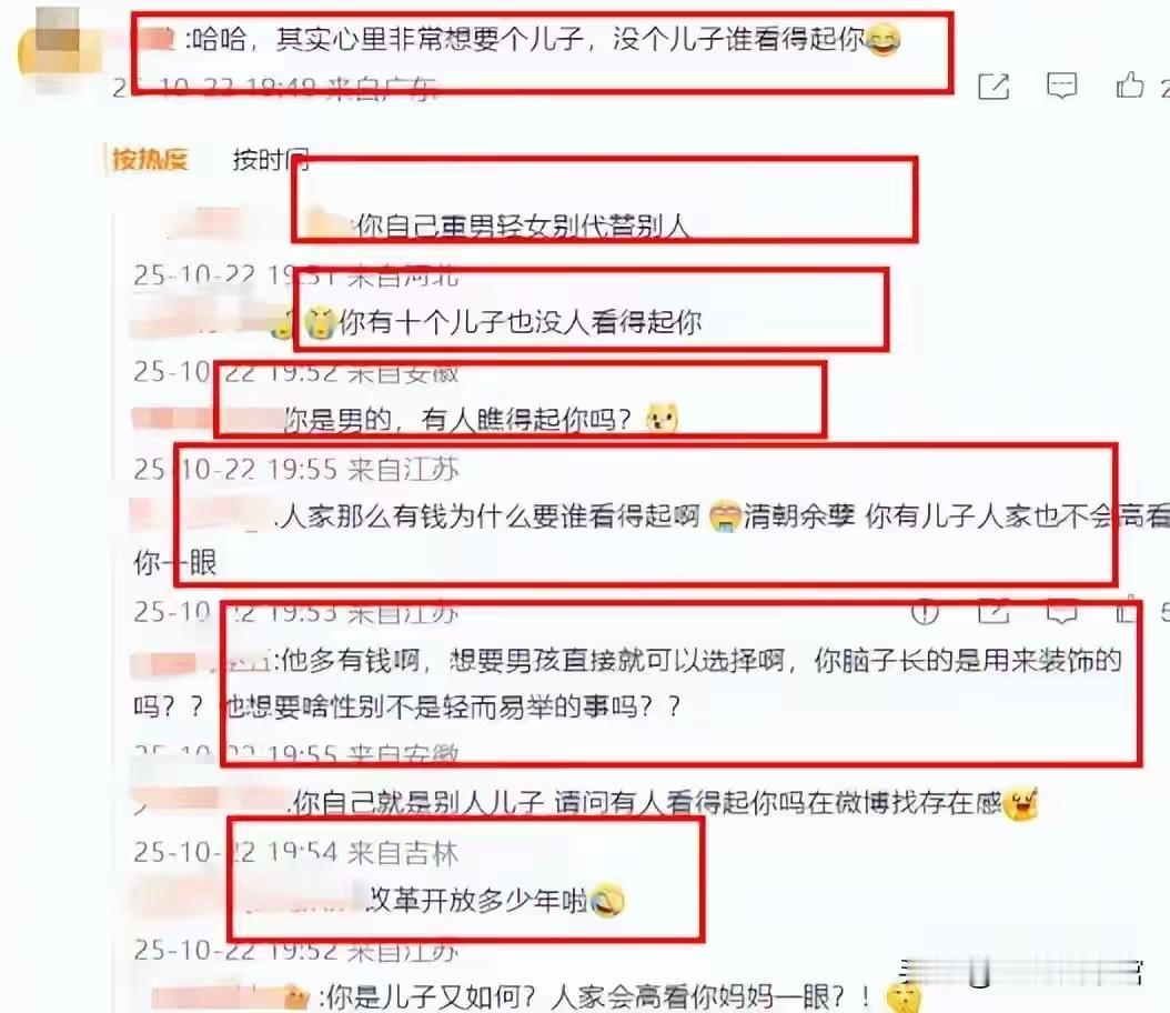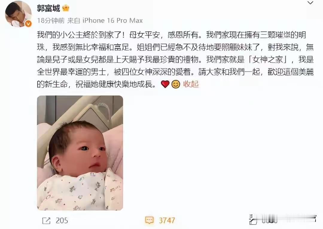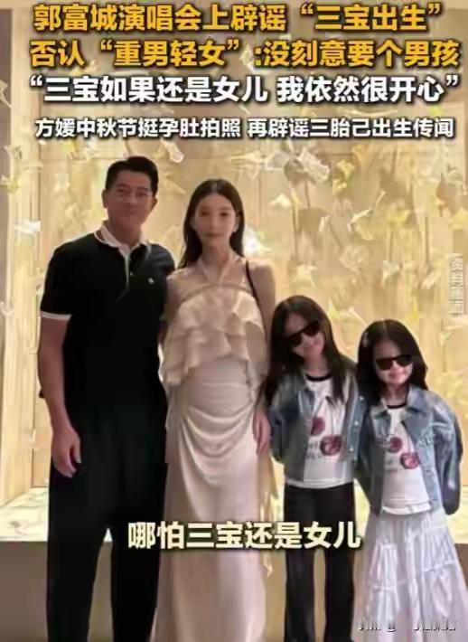 巨额财产无儿子继承?郭富城三胎得女不到24小时,恶心一幕出现了   两人先后在社交平台官宣喜讯。评论区有人大方的送上了祝福也有人嘲讽人家还是想要儿子   网友表示:当初把女人比喻鞋子。不合脚。现在自己三个女儿。[捂脸][捂脸][捂脸]。以后别人也这样评价回来咋整[捂脸]   第三胎还是女儿会笑死全香港人,特别是前任更开心。不要自欺欺人,没有儿子就是没有二儿子,这个就是事实,这么大的资产不可能没有后人来接手的,肯定还会生第四胎,生到儿子为止,他是孝顺的儿子肯定更加会生到儿子才可以停   讲真,他钱多是一回事,如果不想生儿子就不会拼三胎。谁不想儿女双全   也有网友表示:香港是可以查胎儿性别的。人家既然要生,那肯定是爱这个孩子的。   我觉得人家无所谓。真的非要生儿子很简单啊,试管就行的,很多普通百姓都这么干了,他又不缺钱。还是无所谓的。