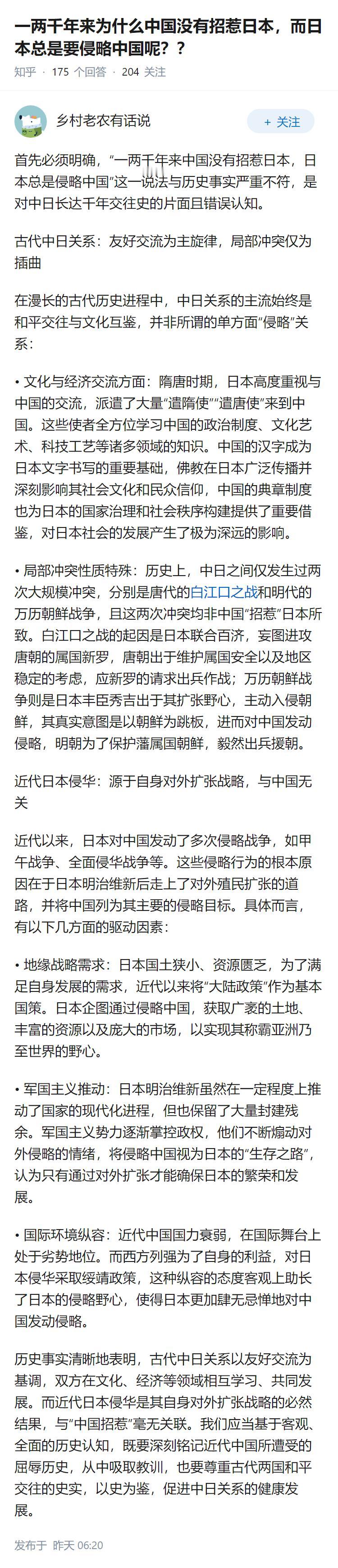 一两千年来为什么中国没有招惹日本,而日本总是要侵略中国呢??