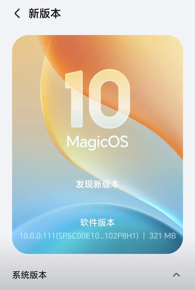荣耀Magic7的MagicOS 10.0系统111版本已经推了,耀子这升级速度够可以的。我是10月20号升级的MagicOS 10.0系统的,四天的时间已经收到两个系统补丁更新了。