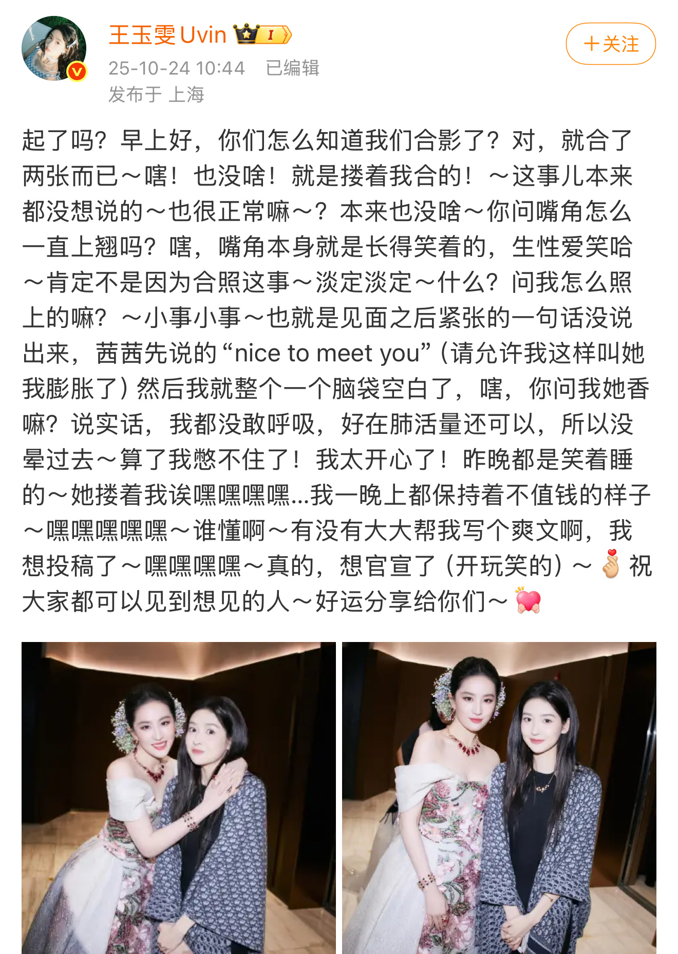 原来明星和明星合照跟我们普通人遇上大明星心路历程一样哒~刘亦菲王玉雯