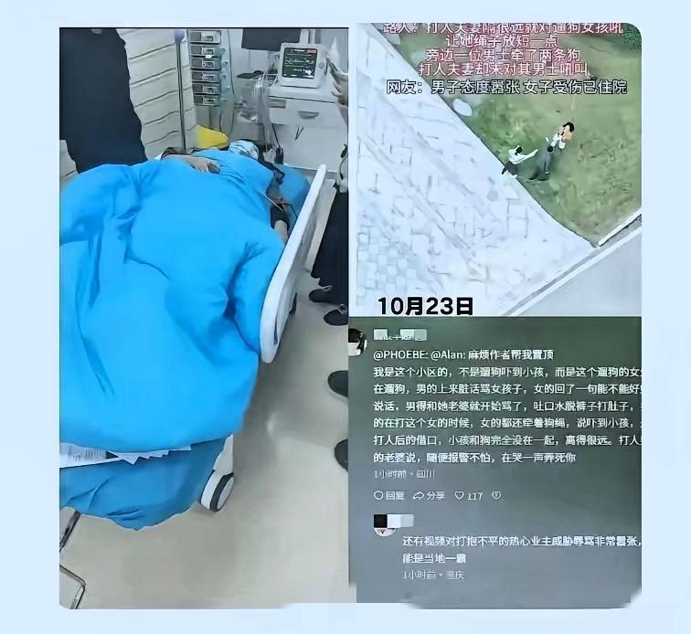 重庆遛狗女子被打这事,真不是你想的那样! 不是没牵绳,也不是狗吓着人,居然就因为狗绳长了点,被一对夫妻当街暴打[__LINK_ICON]。 男的上来就骂脏话,女子回嘴后直接动手,妻子还帮腔打人,踹肚子、吐口水,甚至放话“不怕报警,弄死你”,嚣张得没边。这哪是邻里纠纷,分明是借题发挥的暴力霸凌。 总有人把养犬矛盾扩大化,说要禁养,但这事的核心根本不是狗,是人的恶。 就算有文明养犬的问题,也有12319投诉、法律途径可以解决,动手打人算什么本事?尤其还当着自家孩子的面,这不是教坏孩子吗? 真正该治的不是合规养狗的人,是这种一言不合就动粗的暴戾脾气。 你觉得遇到这种事,该第一时间报警还是先避让?