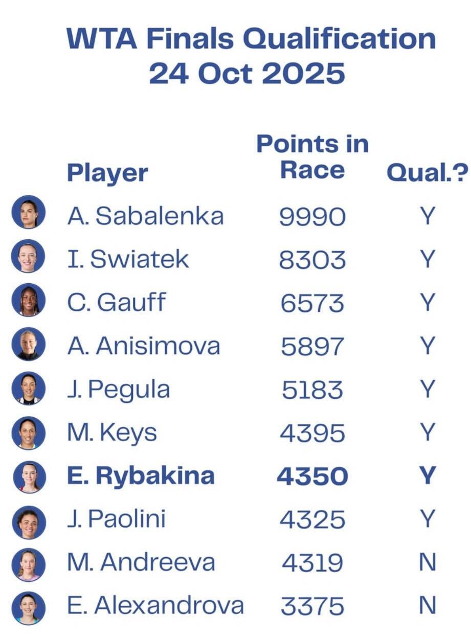 WTA年终总决赛单打名单正式出炉萨巴伦卡、斯瓦泰克、高芙、阿尼西莫娃、佩古拉、凯斯、鲍里妮、莱巴金娜。