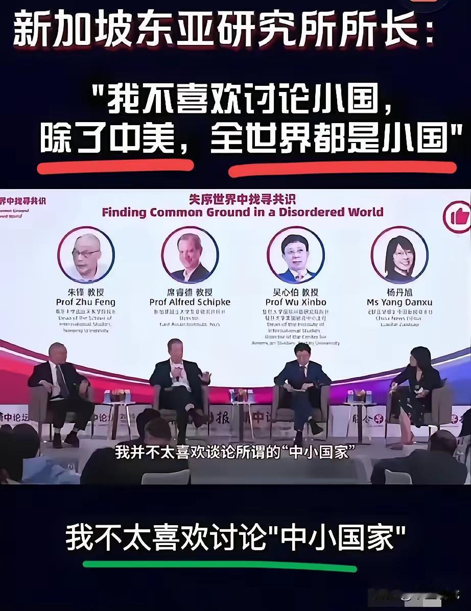 要论整治新加坡人,还得美国人来!美国教授到新加坡参加论坛,现场直言,除了中美之外,我不喜欢谈论中小国家 全世界除了中美,也许再加一两个国家,其他都是小国家。 这是真不给面子啊! 台下包括新加坡人在内的那些小国家的人一听美国人这话,可能当时都懵了。 他们可能心想,你美国人就算心里看不起我们,也不用当着我们的面说吧?连这点面子都不给吗? 搞笑的是,美国教授说了这几句话之后,媒体上没有半点波澜,也就是说,包括新加坡人在内的那些小国家的人,连反驳都不敢…… 网友评论:中国人天然对对新加坡有好感,主要原因坡县大多数是华人的后代,其实大可不必,他们没有多少人对中国有好感,对这个国家该敲打就敲打没必要觉得不好意思 本来就是啊!新加坡三番两次把自己当世界大国,前几年说自己愿意调停中美矛盾,最近那个新总统,也装了一把大头蒜。 也就是中国脾气好,没当面骂一句撮尔小国。 不过很明显,美国没中国那个好脾气。