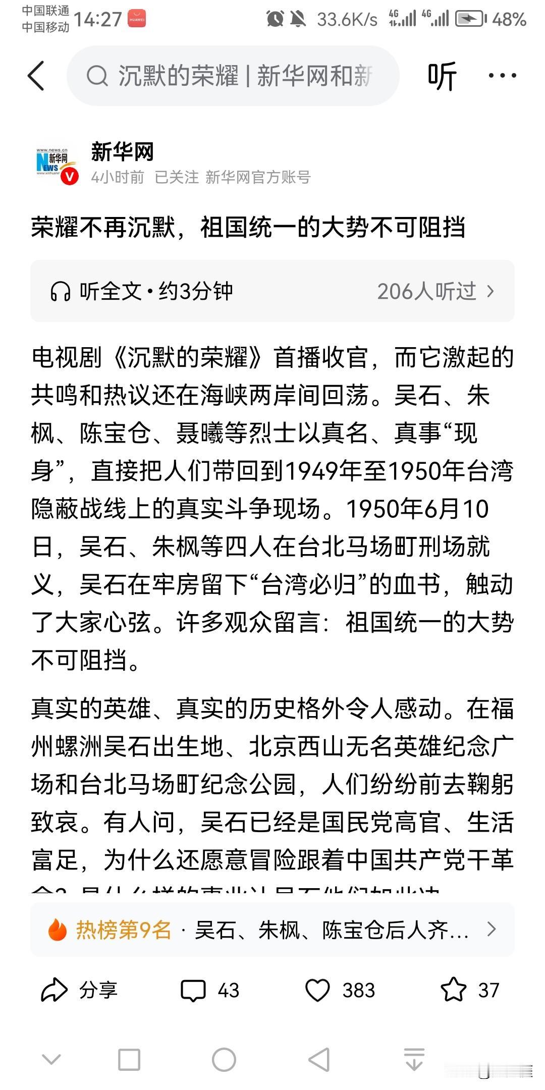 祖国统一的趋势越来越快了: 1、郑丽文要来大陆,为了两岸和平,反对台独。 2、四中全会重要目标之一就是十五五期间推进祖国统一。 3、现在顶级官媒新华社直接说祖国统一的大势不可阻挡。 4、大国重器频繁亮相展示,北海,东海,南海舰队接连发宣传片——台湾当归。 用不了几年,五星红旗将飘扬在台北街头!!!