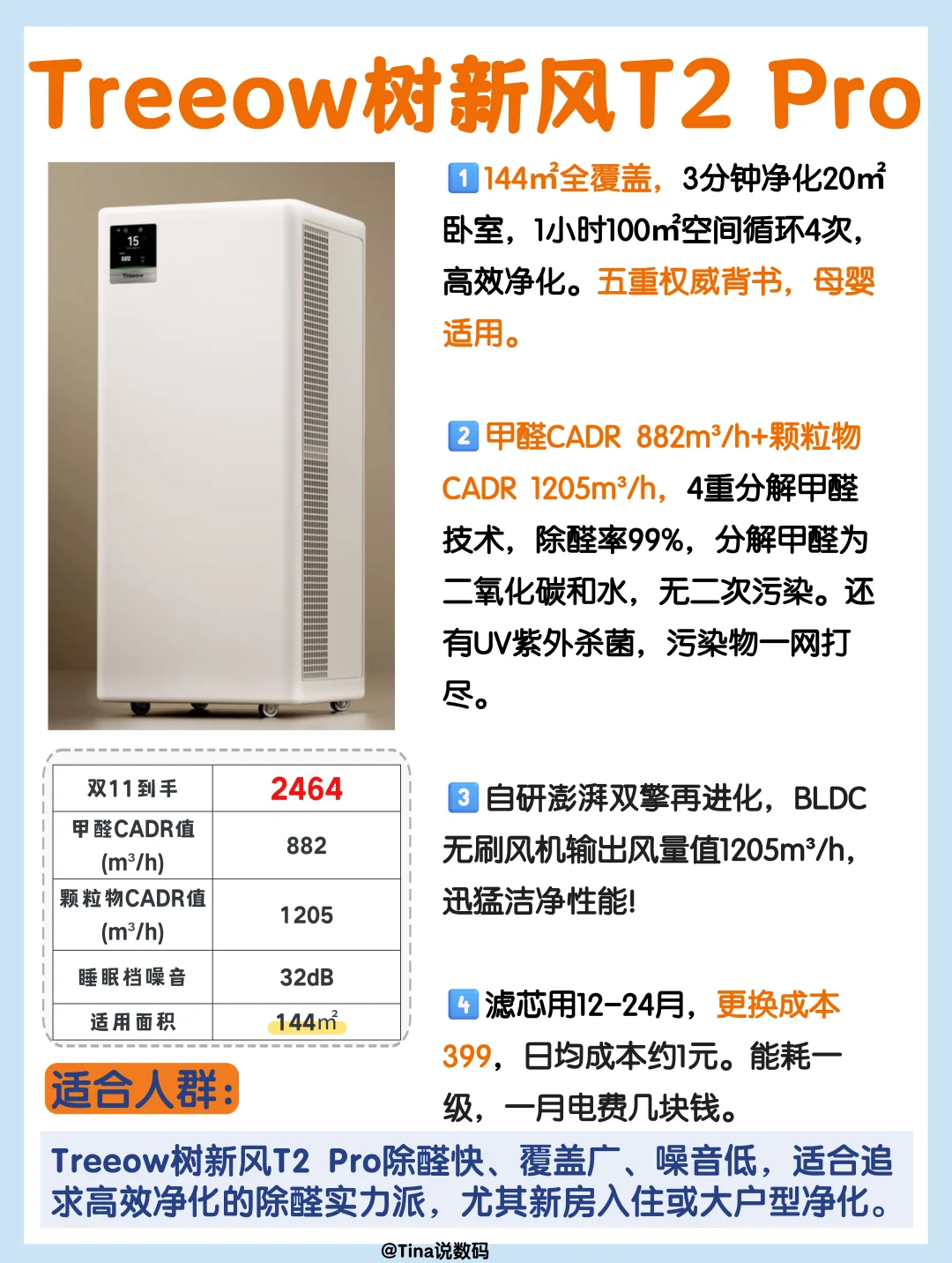 适合新房急住/装修家庭/大户型/办公室,144㎡全覆盖,3分钟净化20㎡卧室,1小时100㎡空间循环4次,高效净化。五重权威背书,母婴适用。