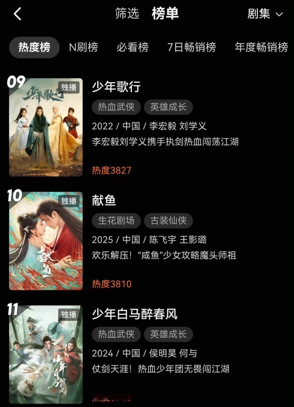暗河传一播这系列的少年歌行又涨上来了!好剧长尾效应就是[点赞]
